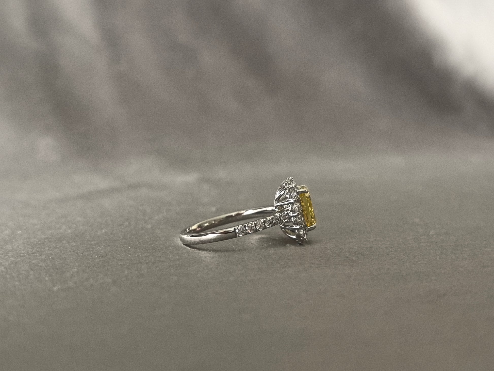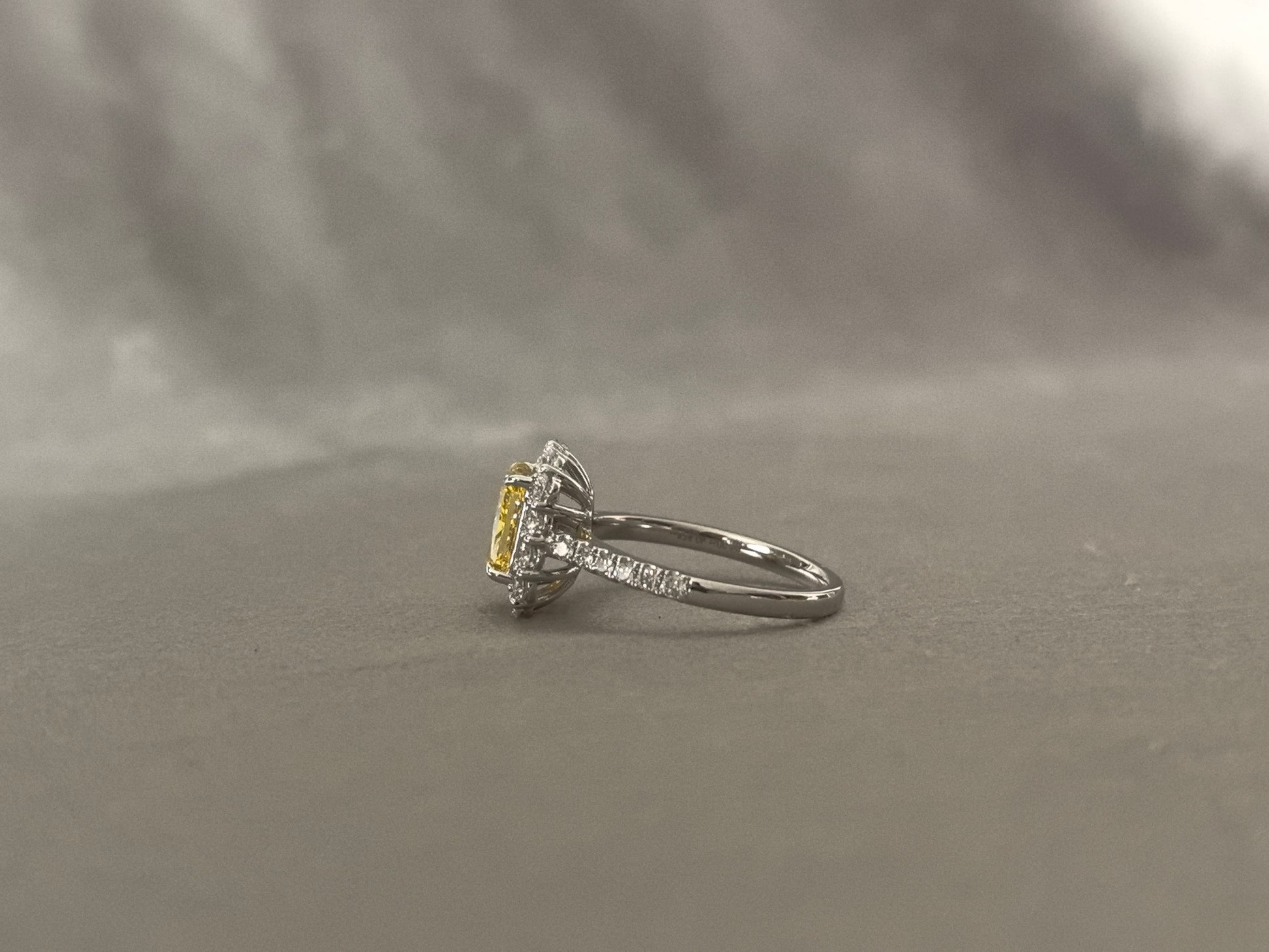 2 Carat 4.3g 18K Gold | Cushion Cut Fancy Vivid Yellow Lab-Grown Diamond Ring | 4.3g 18K Gold | Vintage Half-Halo Design