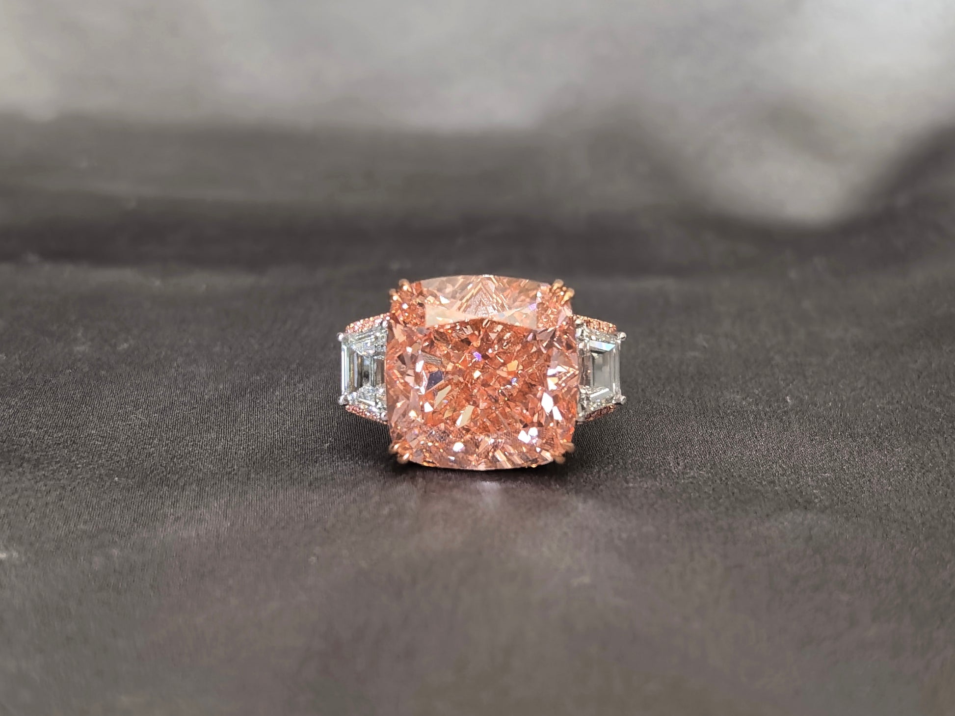 Enter the realm of extraordinary luxury with this breathtaking 25-carat cushion cut pink lab diamond ring—a true masterpiece of modern gemology and artistry. This colossal pink diamond, radiating an intense and vivid hue, is precision-cut into a lavish cushion shape that maximizes its mesmerizing color saturation and brilliance. Set in an exceptionally fancy design featuring intricate metalwork, dual halos, and sculptural elements, this ring is destined to become a legendary heirloom for those who demand nothing less than the pinnacle of opulence and ethical sophistication.