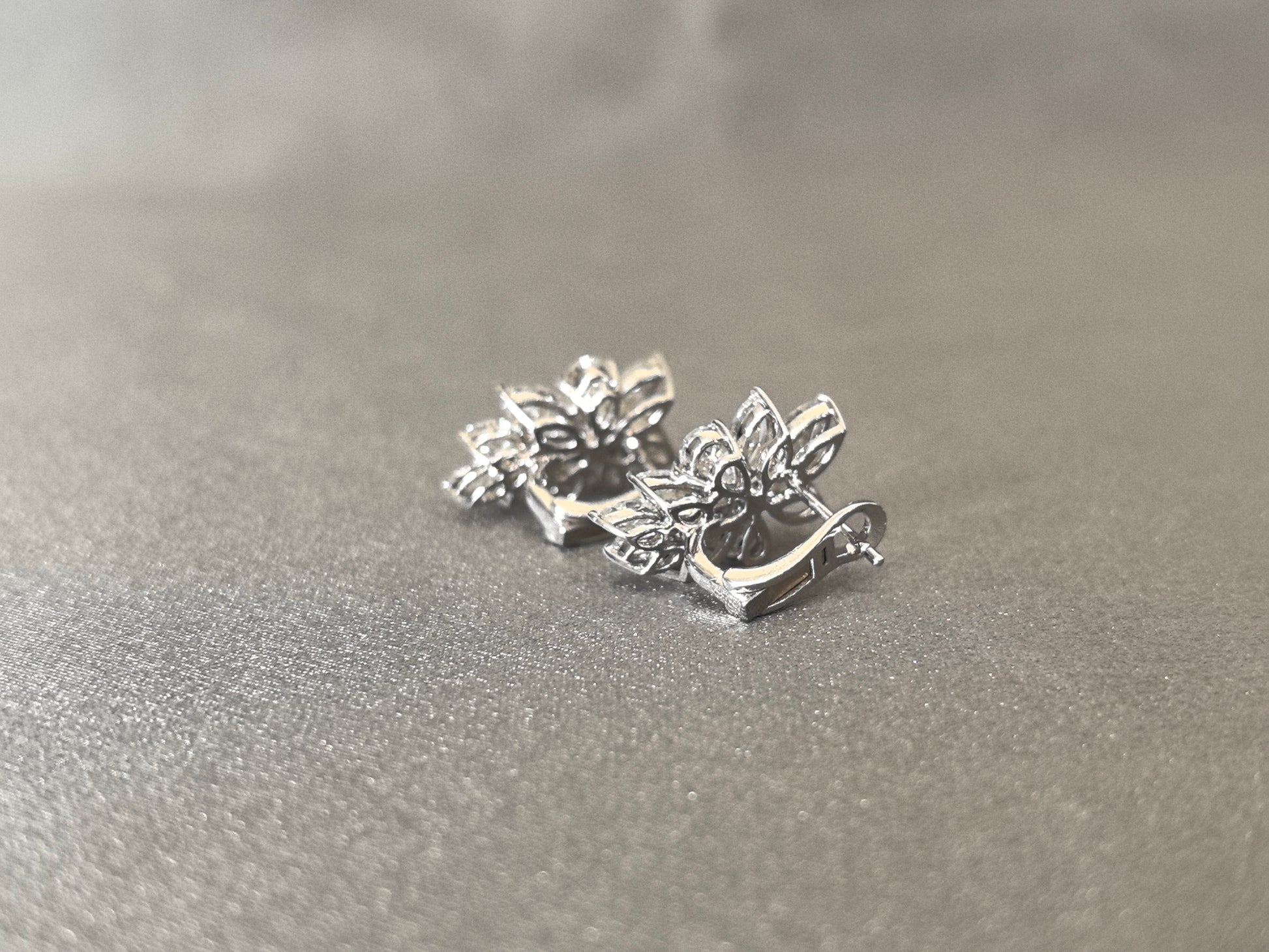 Embrace the delicate beauty of nature with these exquisite leaf-shaped earrings, artfully crafted from marquise and pear-cut lab-grown diamonds. Each earring features a graceful arrangement of marquise diamonds forming the leaf's elegant veins and pear-cut diamonds outlining its gentle contours, all centered around a sparkling mini round diamond that mimics a dewdrop glistening at dawn. Designed for the modern romantic, these earrings blend organic inspiration with refined luxury, offering a timeless accessory that speaks to elegance and ethical consciousness.