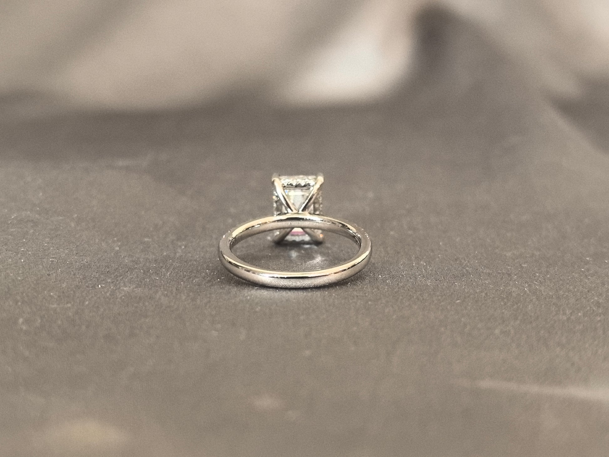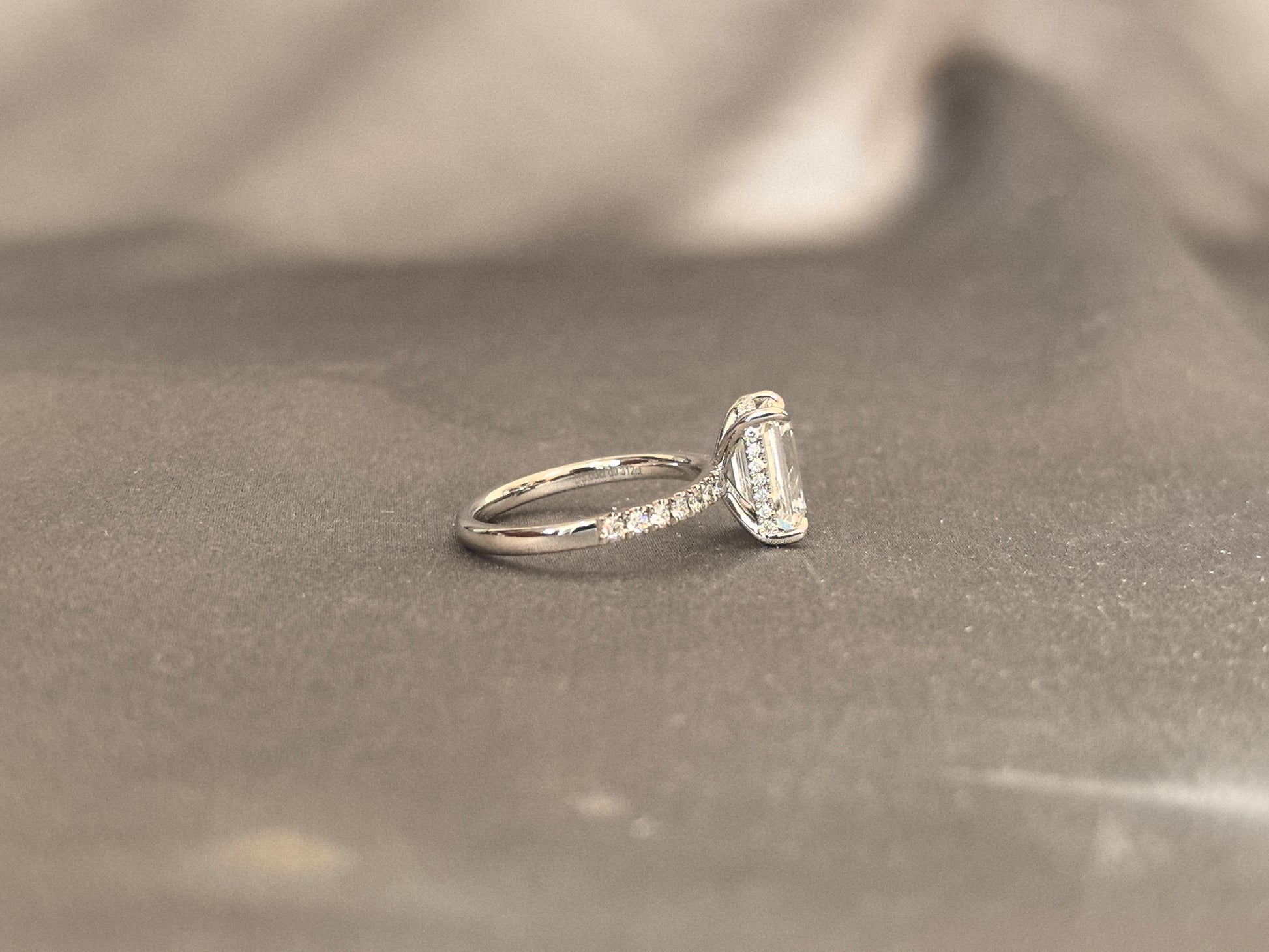 Whether worn as an engagement ring or a statement piece for special occasions, this emerald diamond ring with hidden halo offers effortless versatility and refined elegance. Many of our customers choose it as their go‑to symbol of sophistication — bold, yet deeply captivating.