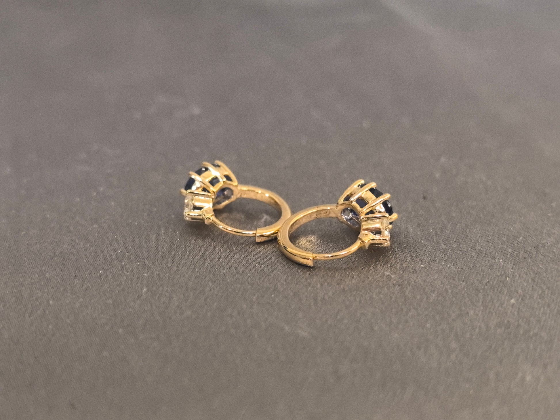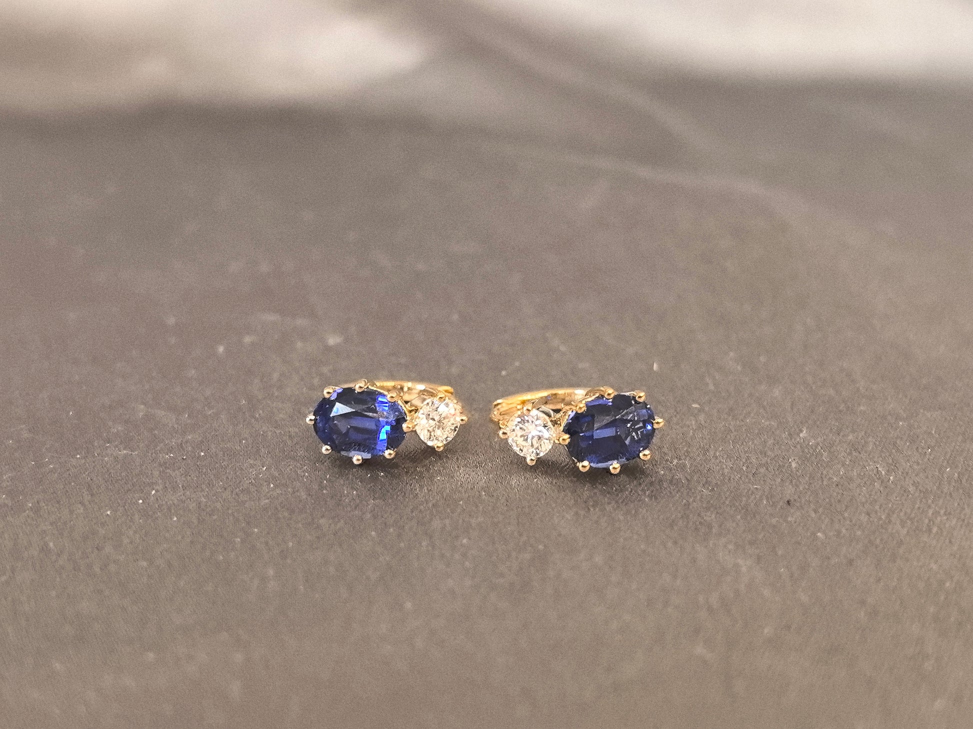 Discover the perfect balance of color and brilliance with these exquisite lab gemstone ear studs. Each earring pairs a velvety blue oval-cut lab sapphire with a sparkling round brilliant lab diamond, creating a sophisticated contrast of form and light. The oval sapphire symbolizes wisdom and truth, while the round diamond represents eternal clarity and strength. Expertly crafted in 14K gold with a secure stud setting, these elegant earrings offer versatile beauty for both everyday wear and special occasions.