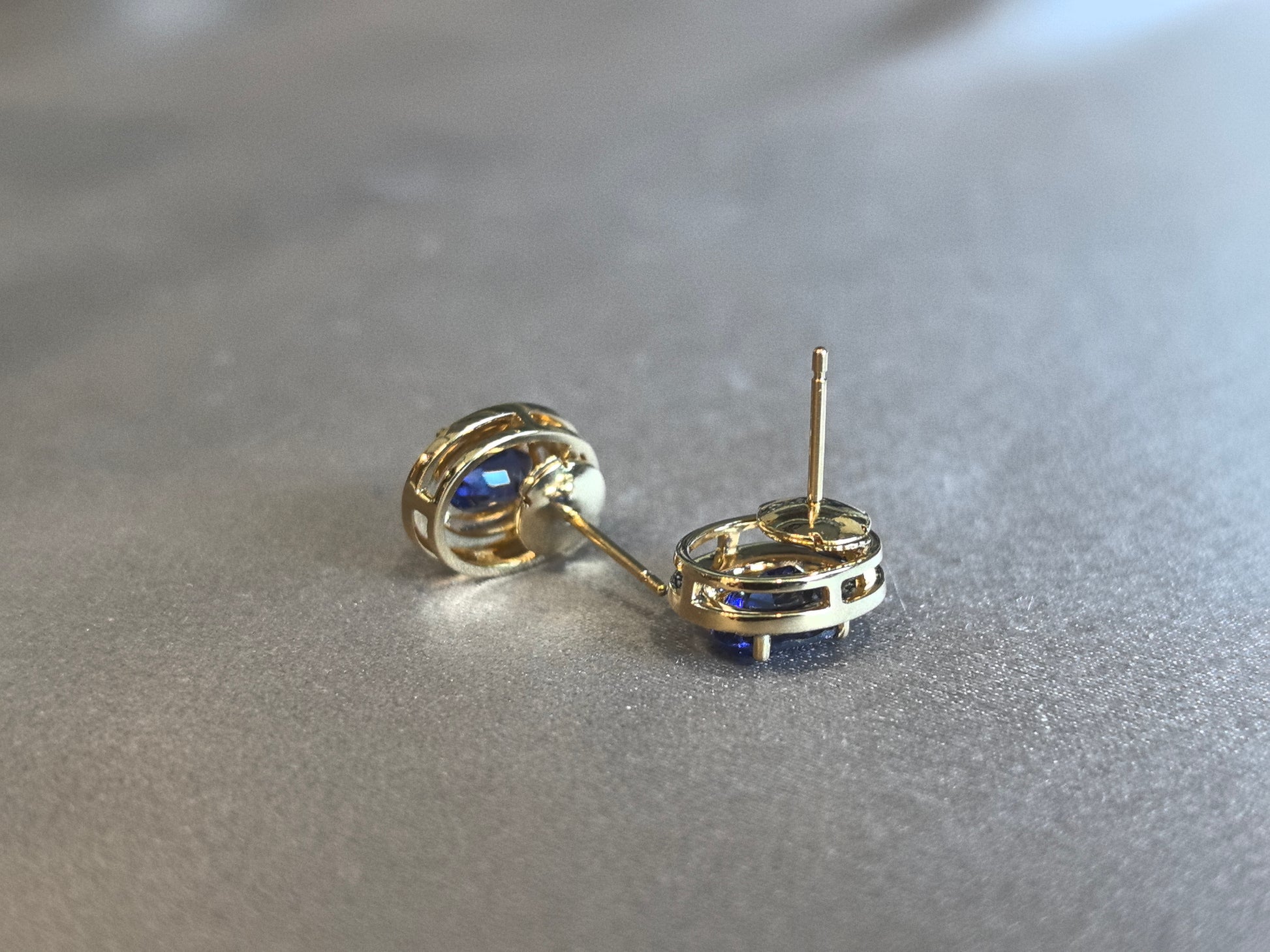 Add a touch of royal elegance to your collection. These stunning halo stud earrings feature a vibrant lab-created blue sapphire, encircled by a brilliant halo of lab-grown diamonds. The classic halo design amplifies the sapphire's rich color with a dazzling frame of sparkle, creating a perfect harmony of color and light.