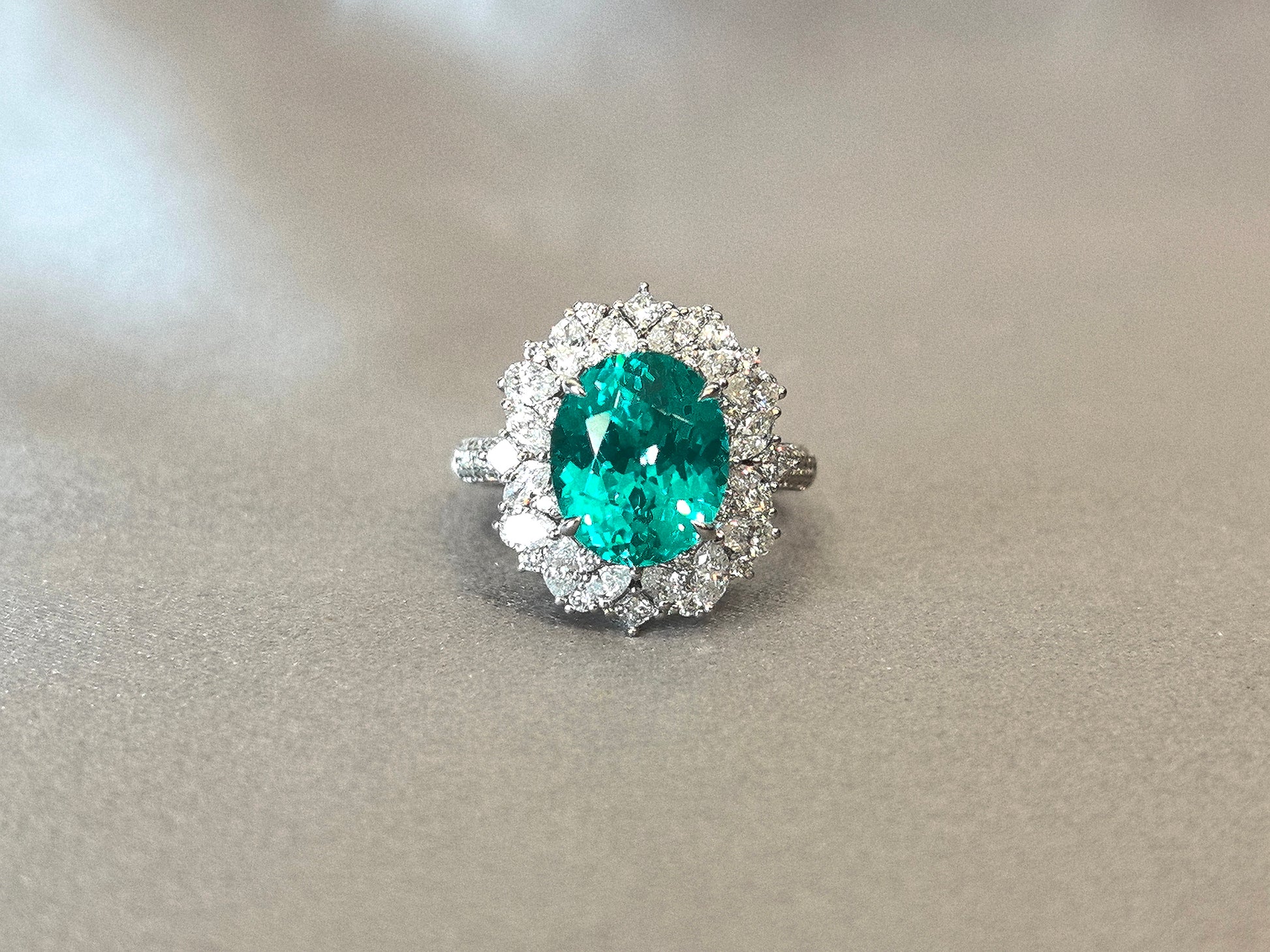 5.8 ct 7.4g Oval Paraiba Ring | Mixed Cut Halo (Round & Pear Diamonds)