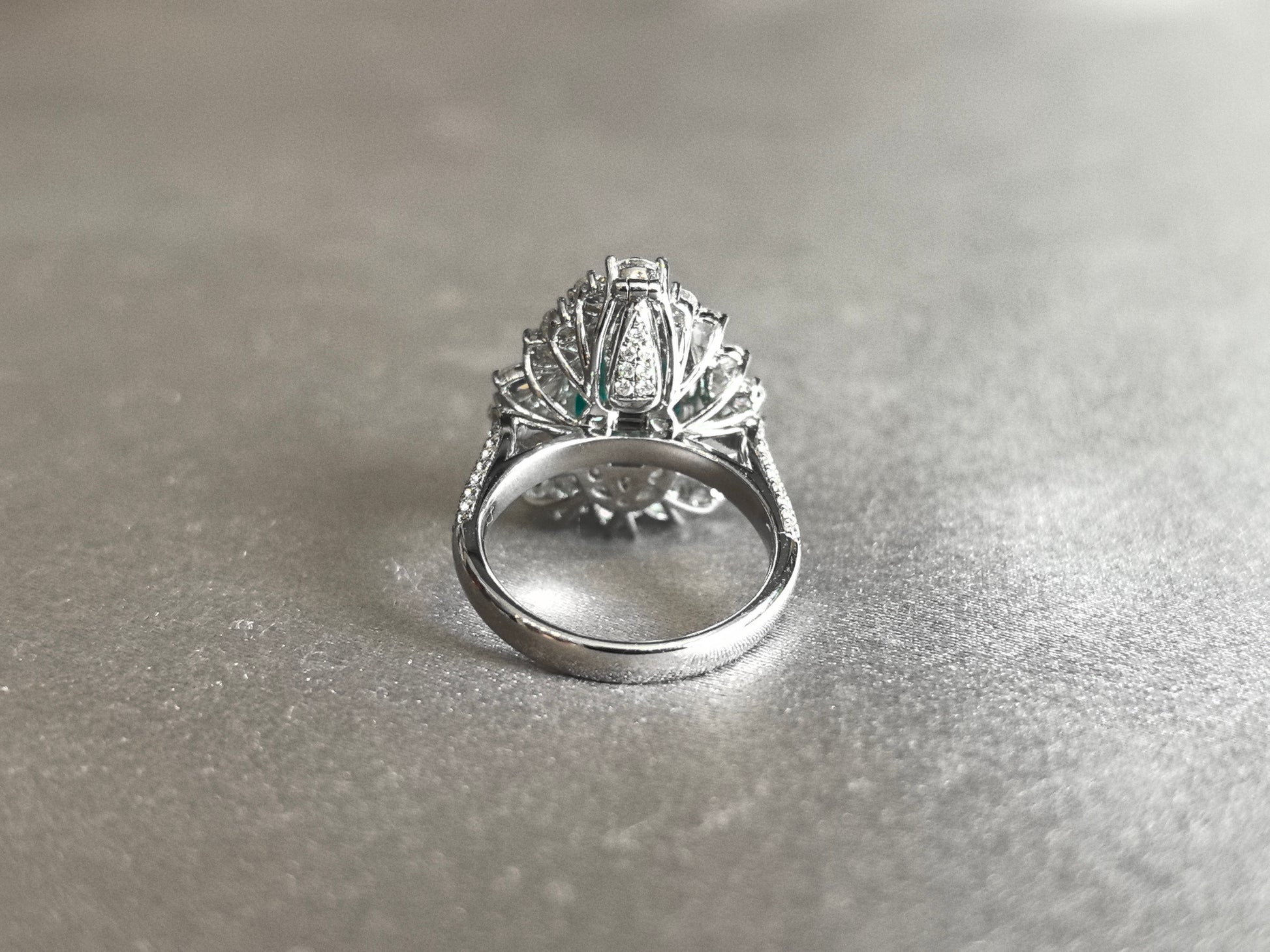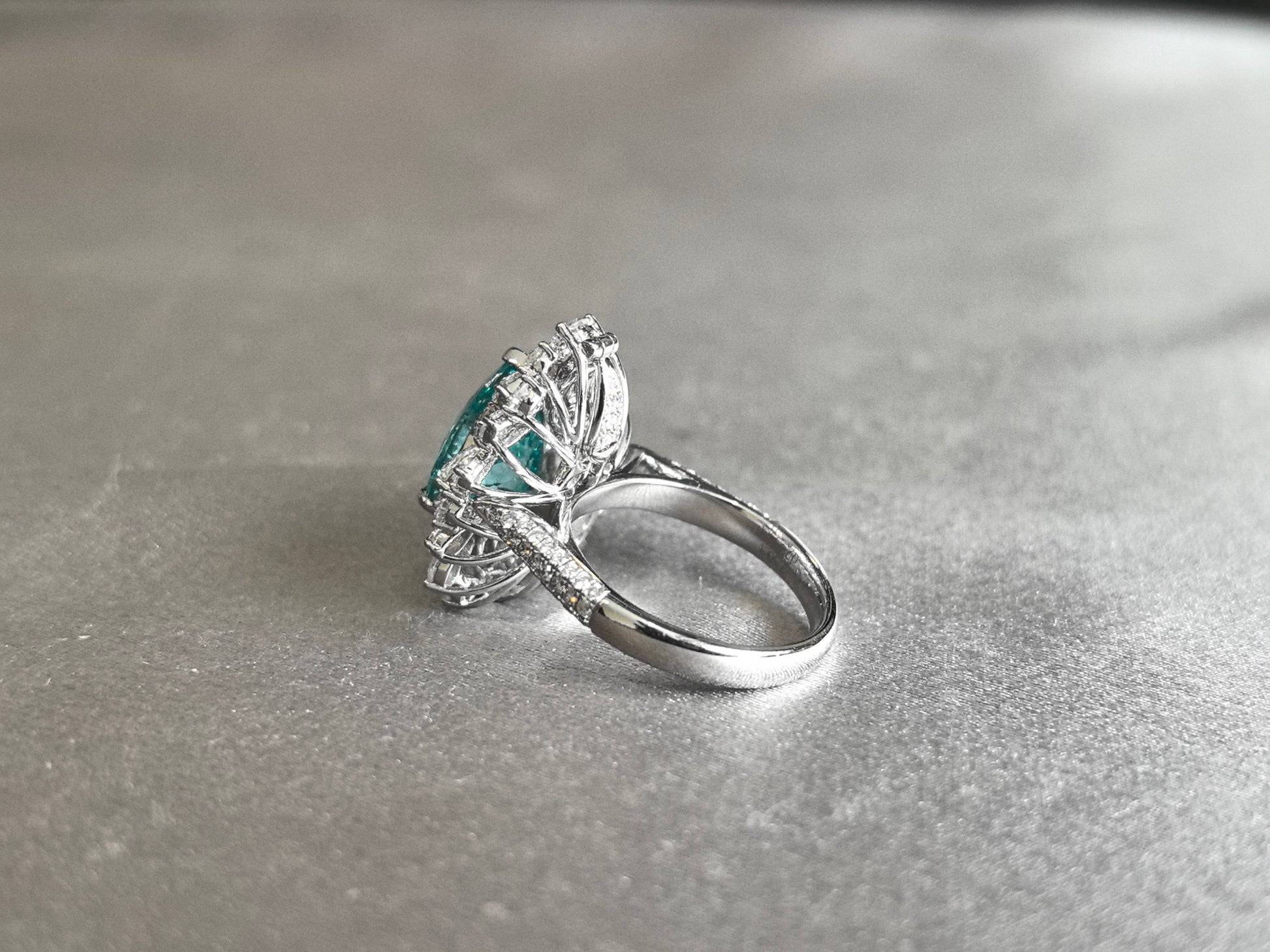 • Center Stone: 7.5ct Oval Cut Paraiba Lab Diamond