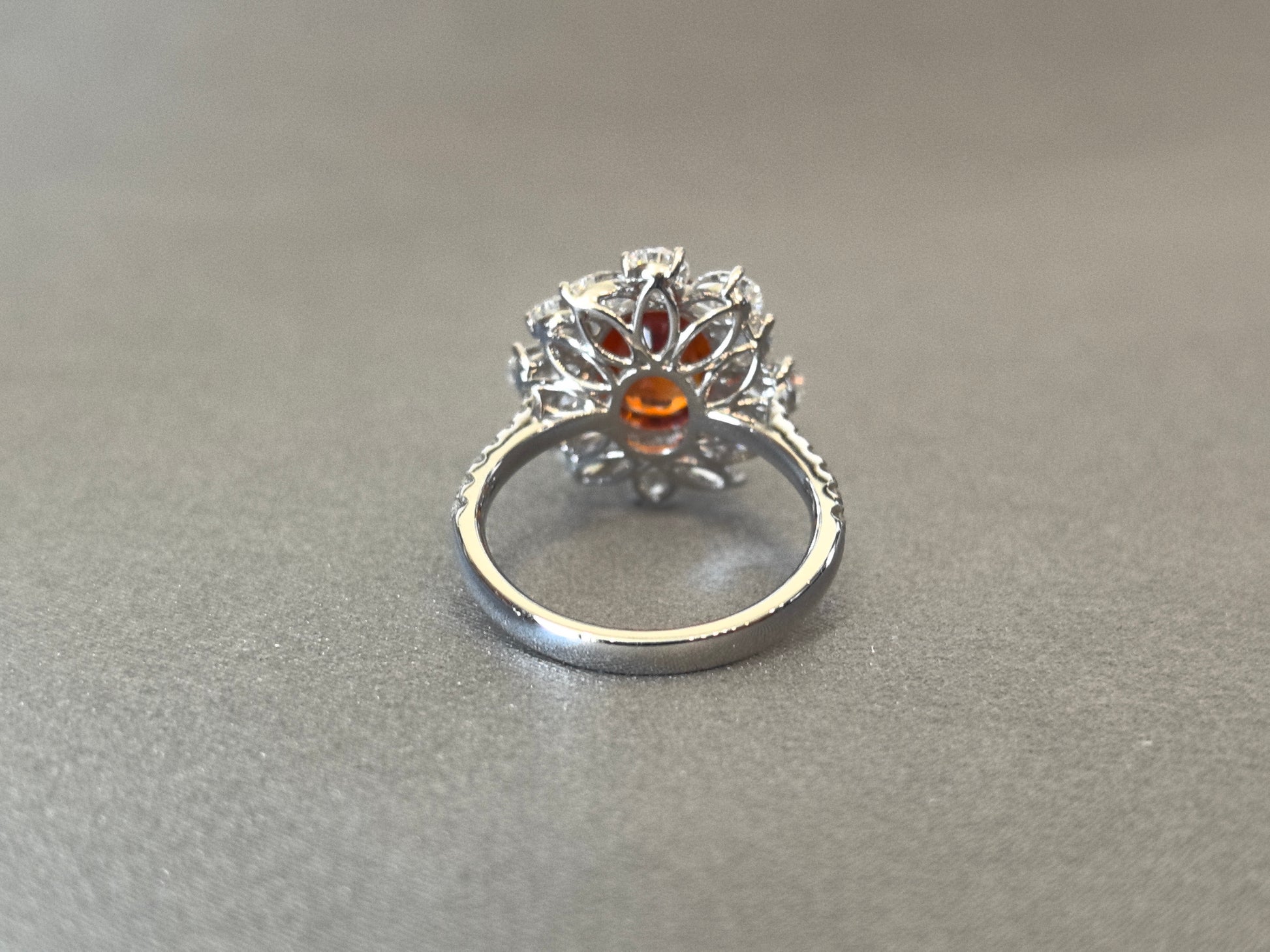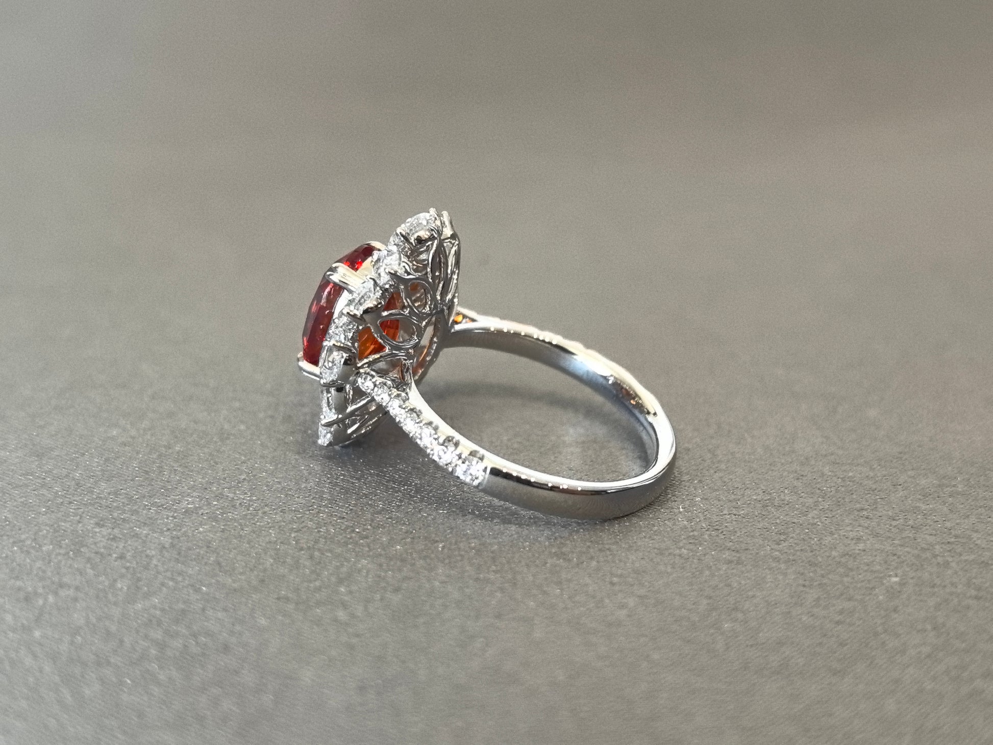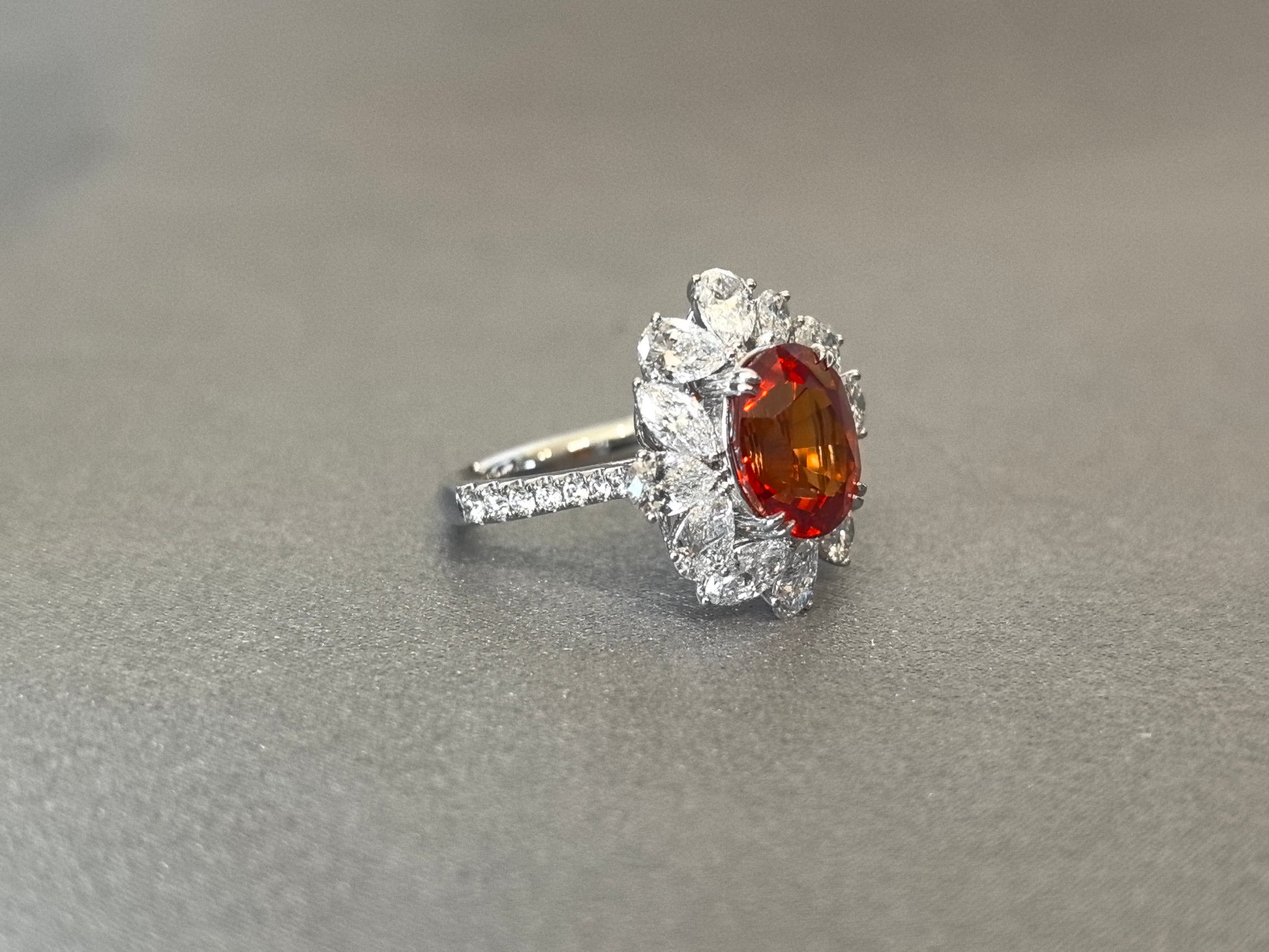 3.8ct 5.7g Oval Vivid Orange Padparadscha Sapphire Ring | Pear & Marquise Diamond Halo