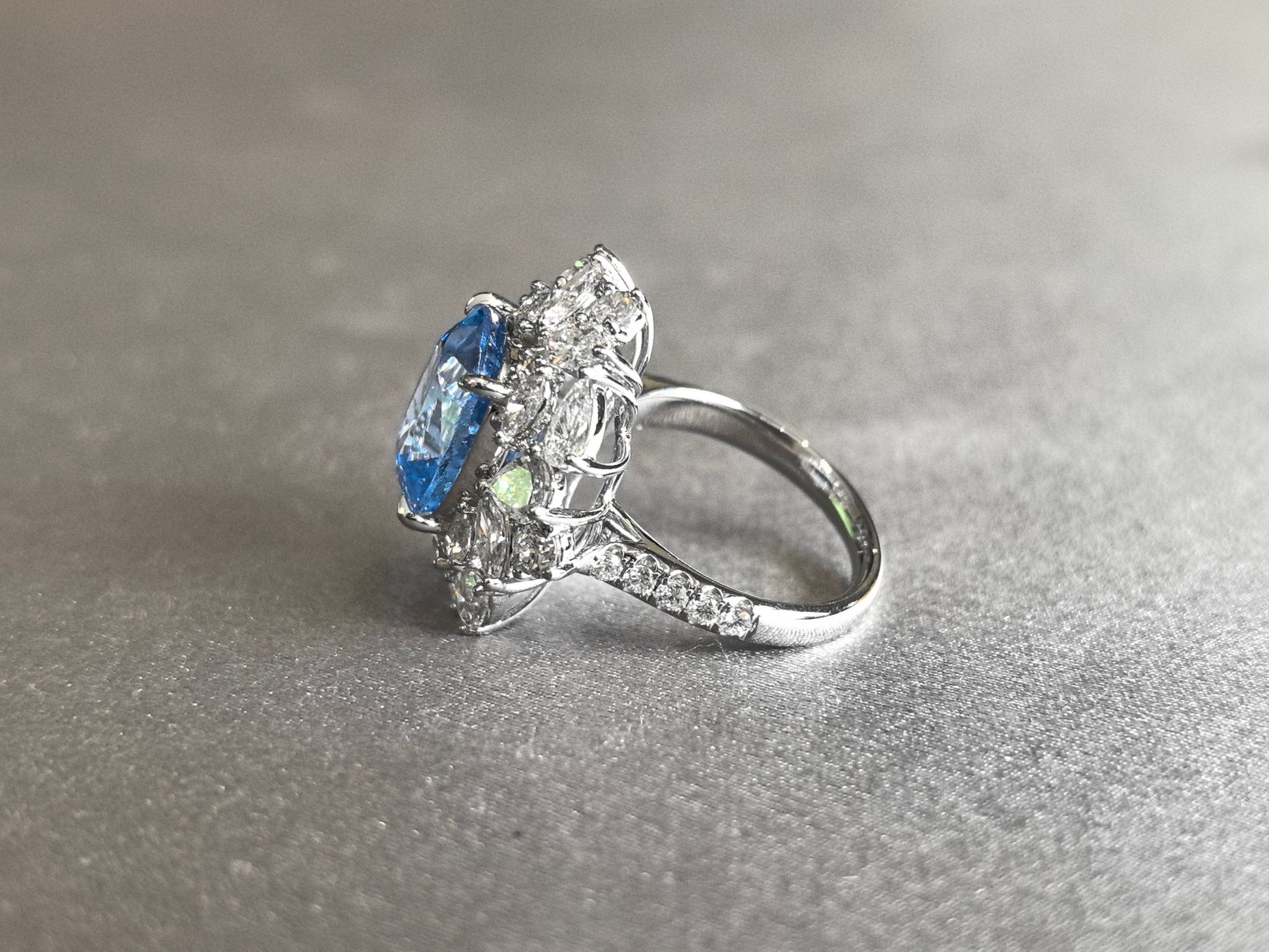 • Center Stone: 8.2ct Oval Cut Paraiba Lab Diamond