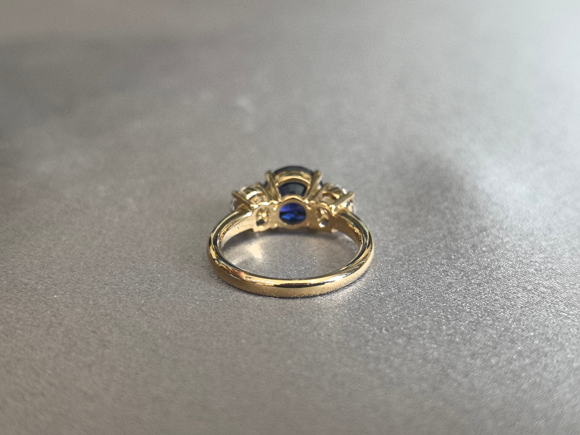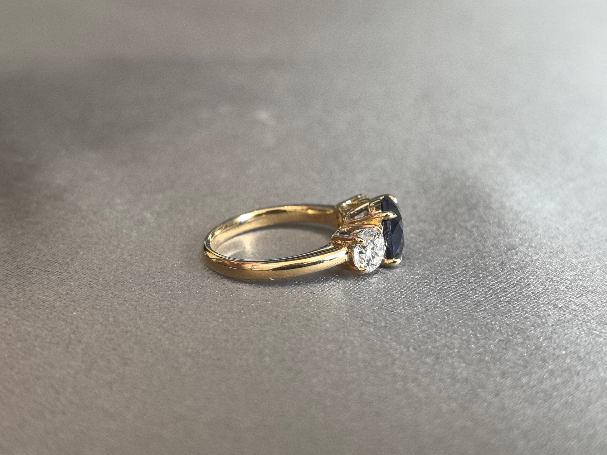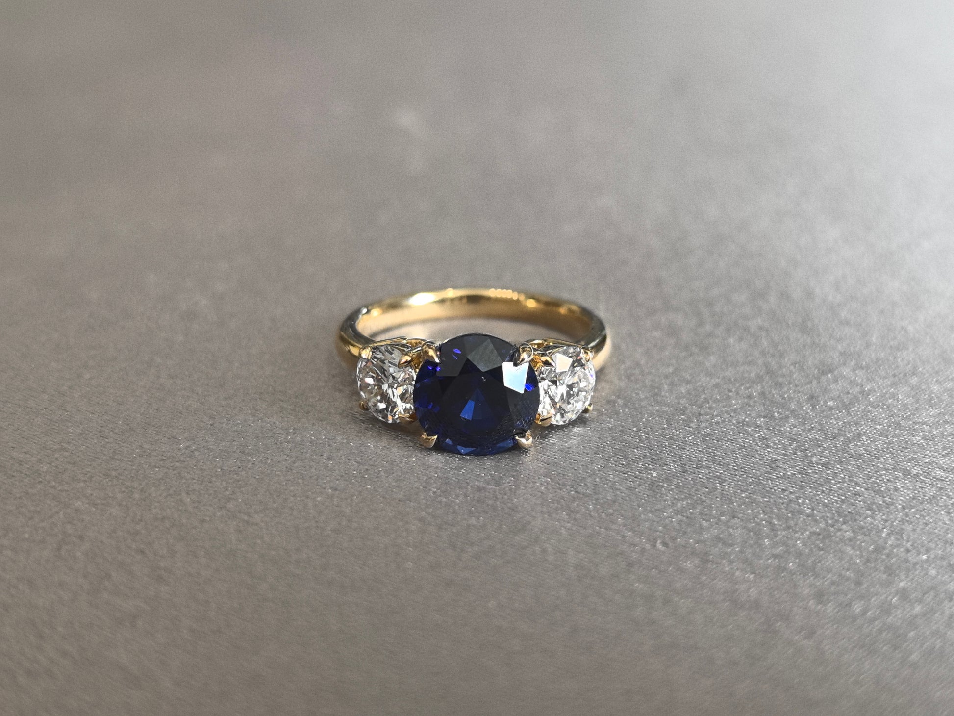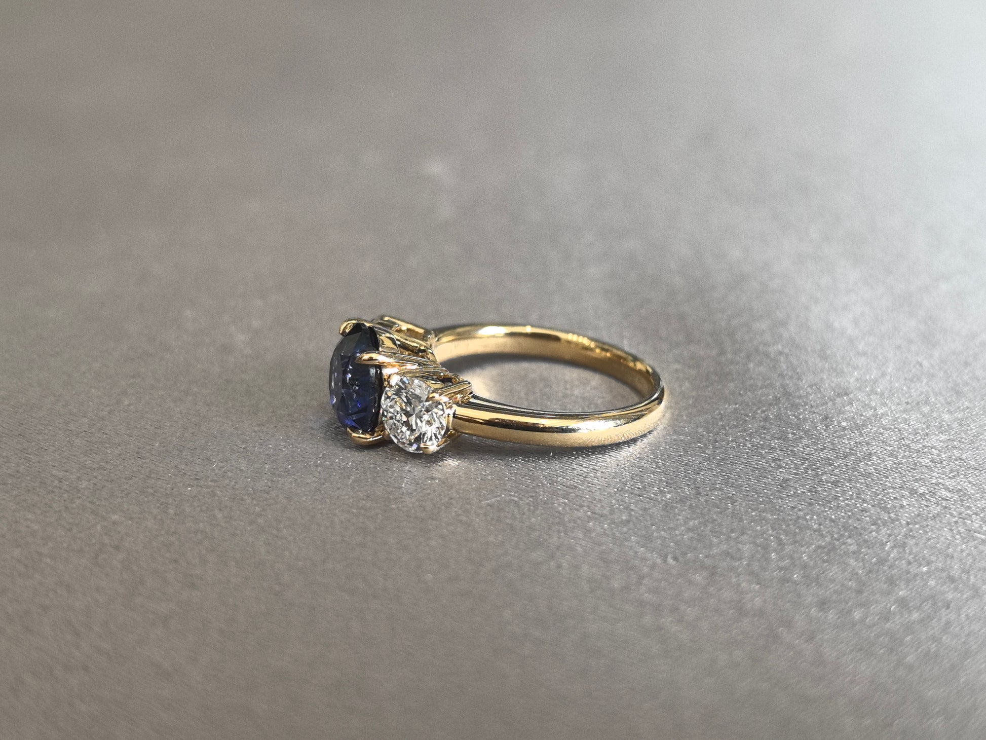 Three Stone Blue Sapphire Ring | Round Brilliant Lab Diamond Side Stones