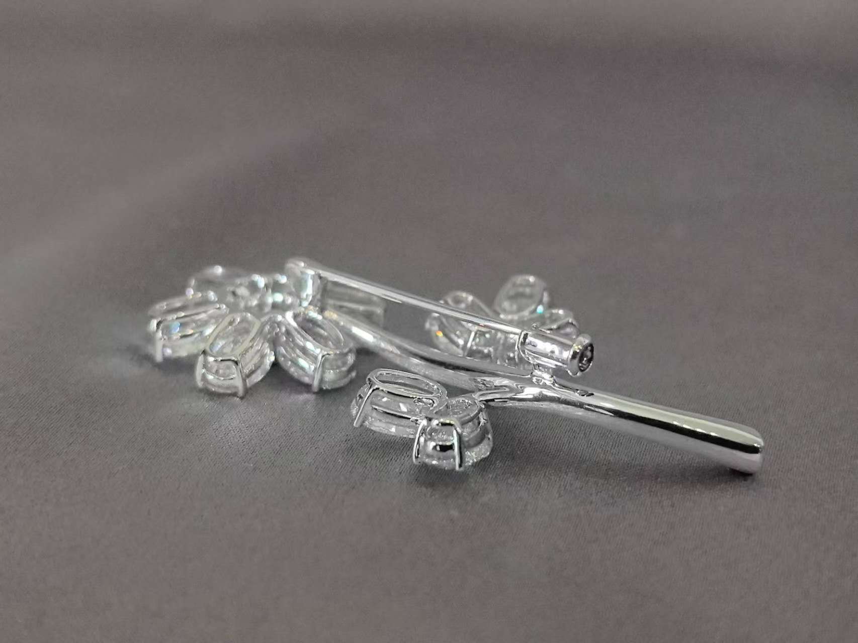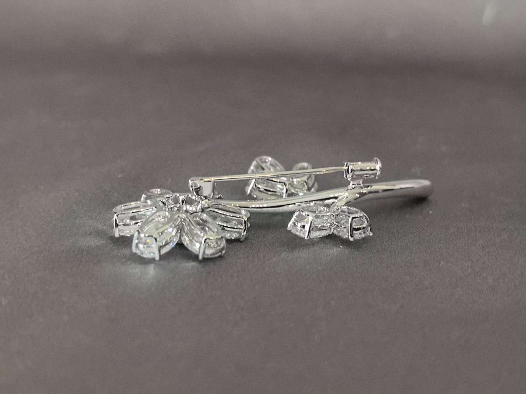 Blossom into timeless elegance with this exquisitely crafted floral brooch, featuring a delicate arrangement of oval-cut lab-grown diamonds meticulously set to form a graceful flower in full bloom. Each diamond petal captures and reflects light with unparalleled brilliance, creating a mesmerizing play of sparkle and sophistication. Designed in luxurious 18K gold, this piece combines botanical inspiration with Art Deco refinement, making it a stunning accessory for lapels, scarves, or hats.