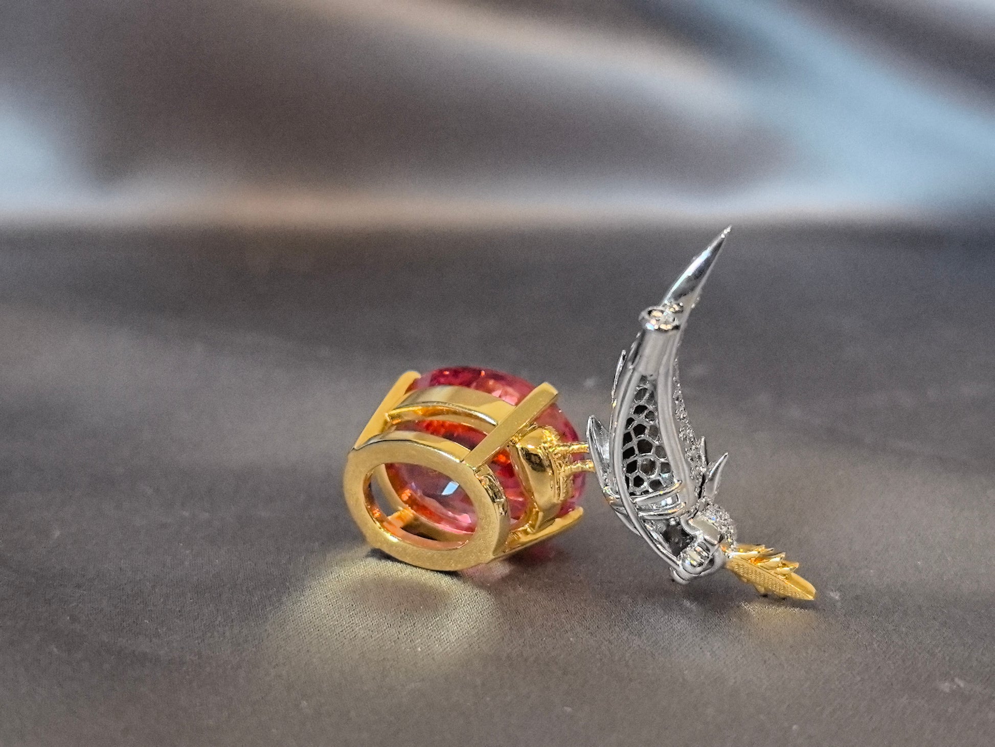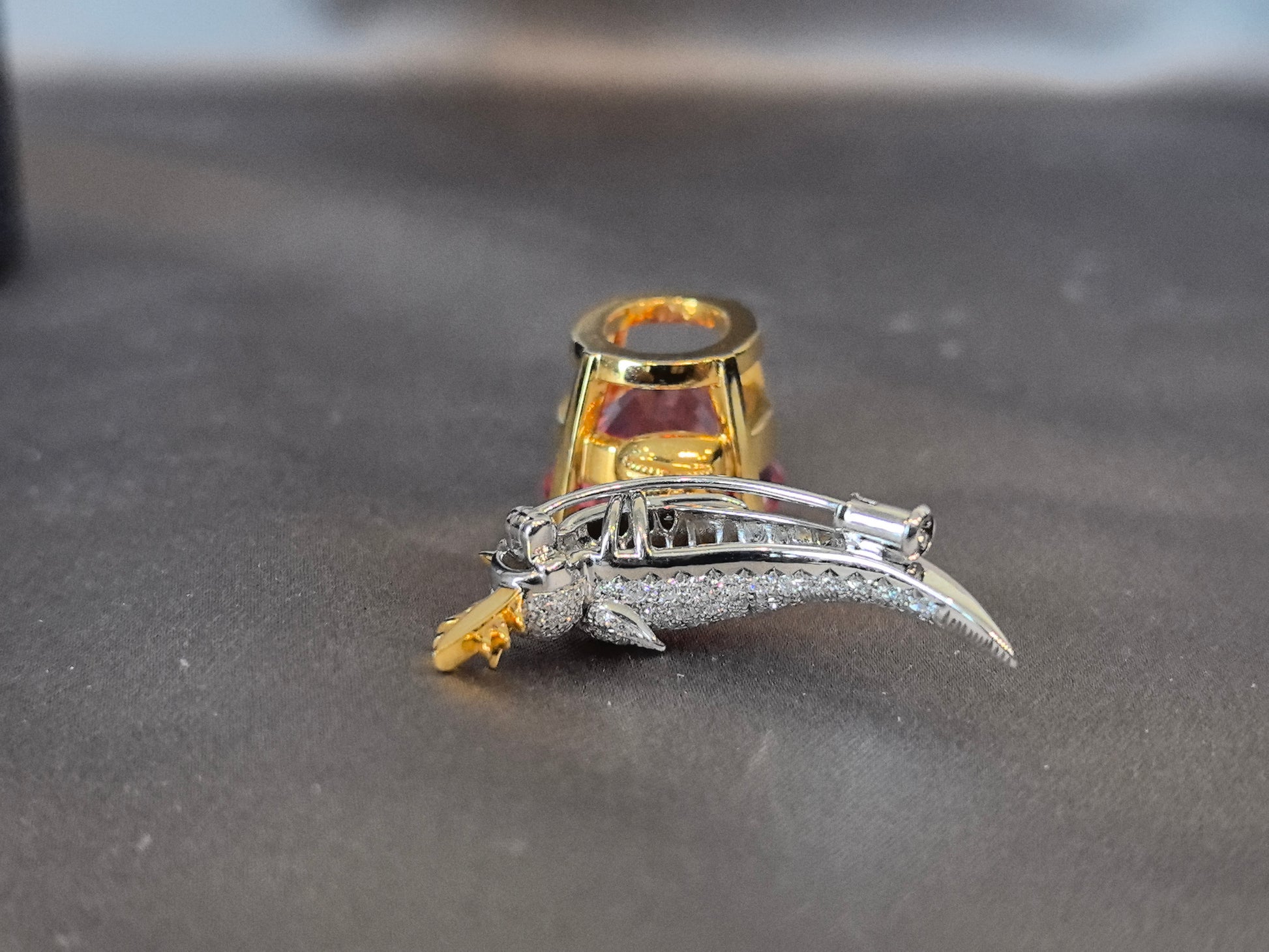 An heirloom-grade masterpiece of wearable art. This extraordinary brooch centers on a rare padparadscha-colored lab-grown sapphire, glowing with a unique sunset hue. Above it, a graceful bird motif is meticulously pavéd with brilliant lab-grown diamonds, capturing a moment of natural elegance and symbolizing freedom, all crafted to the highest standard of luxury.