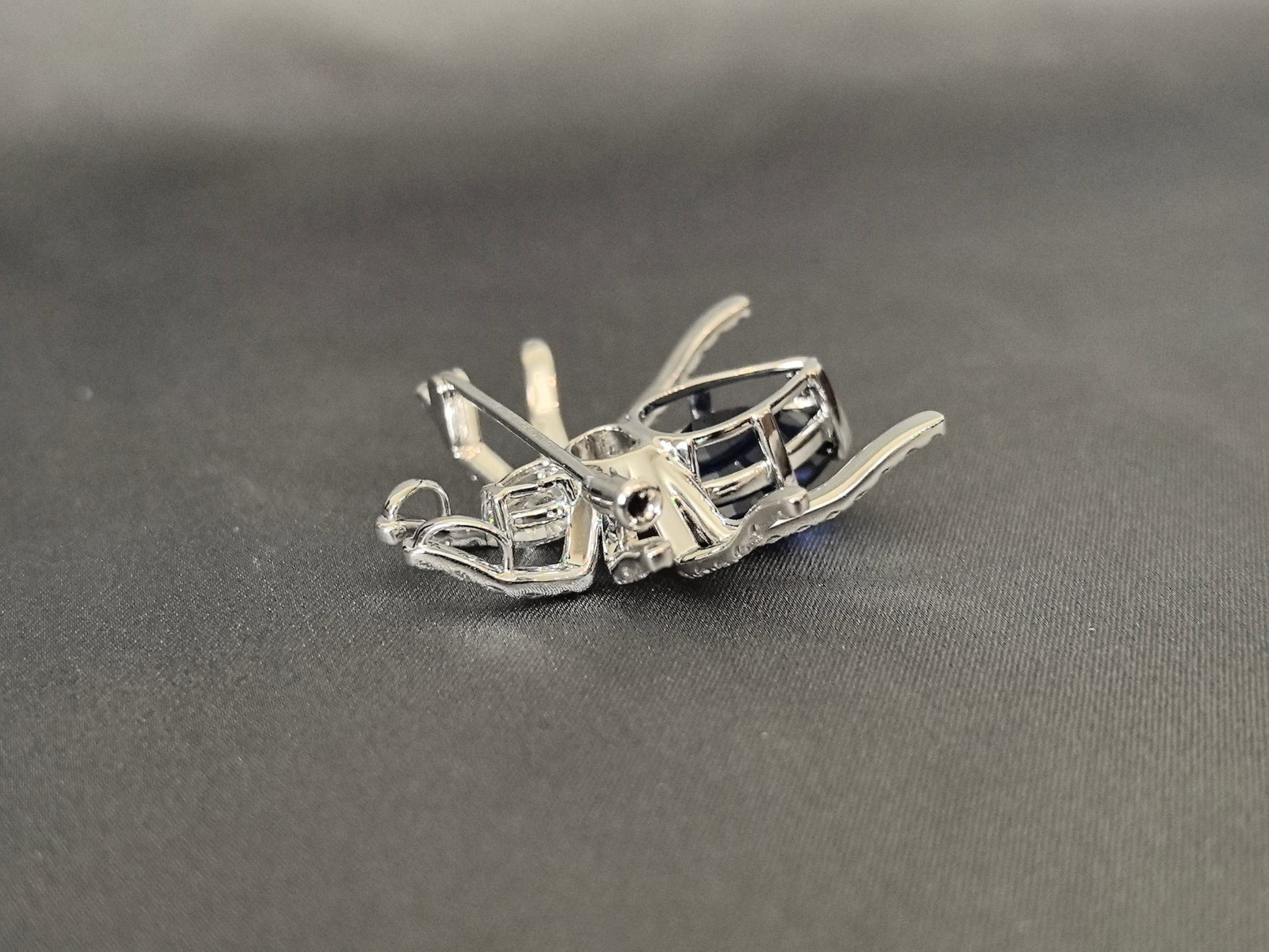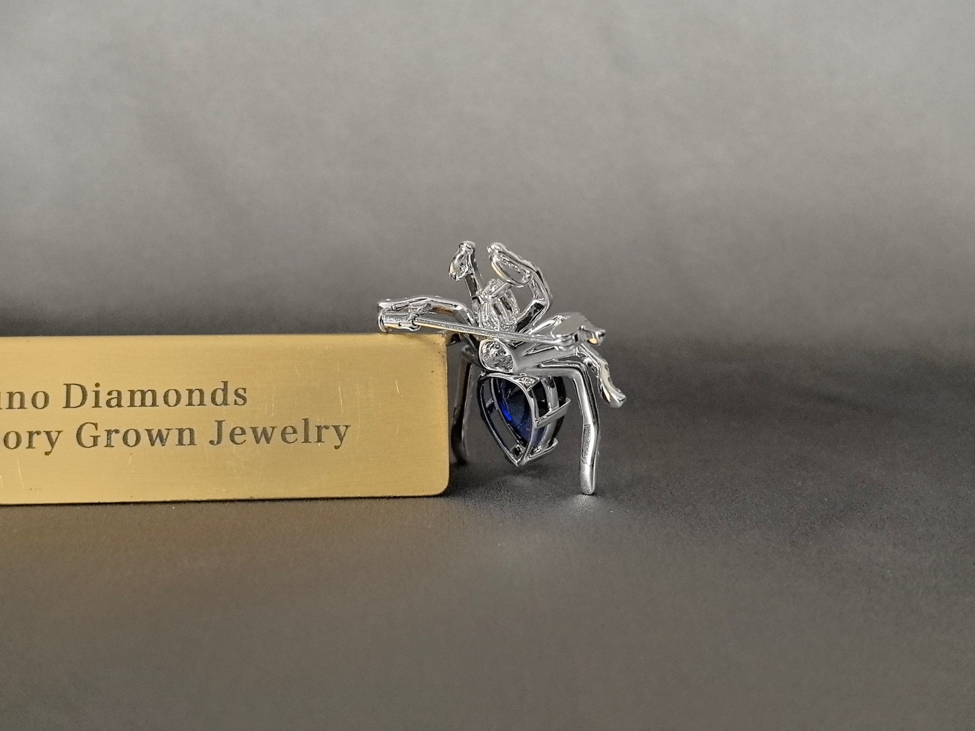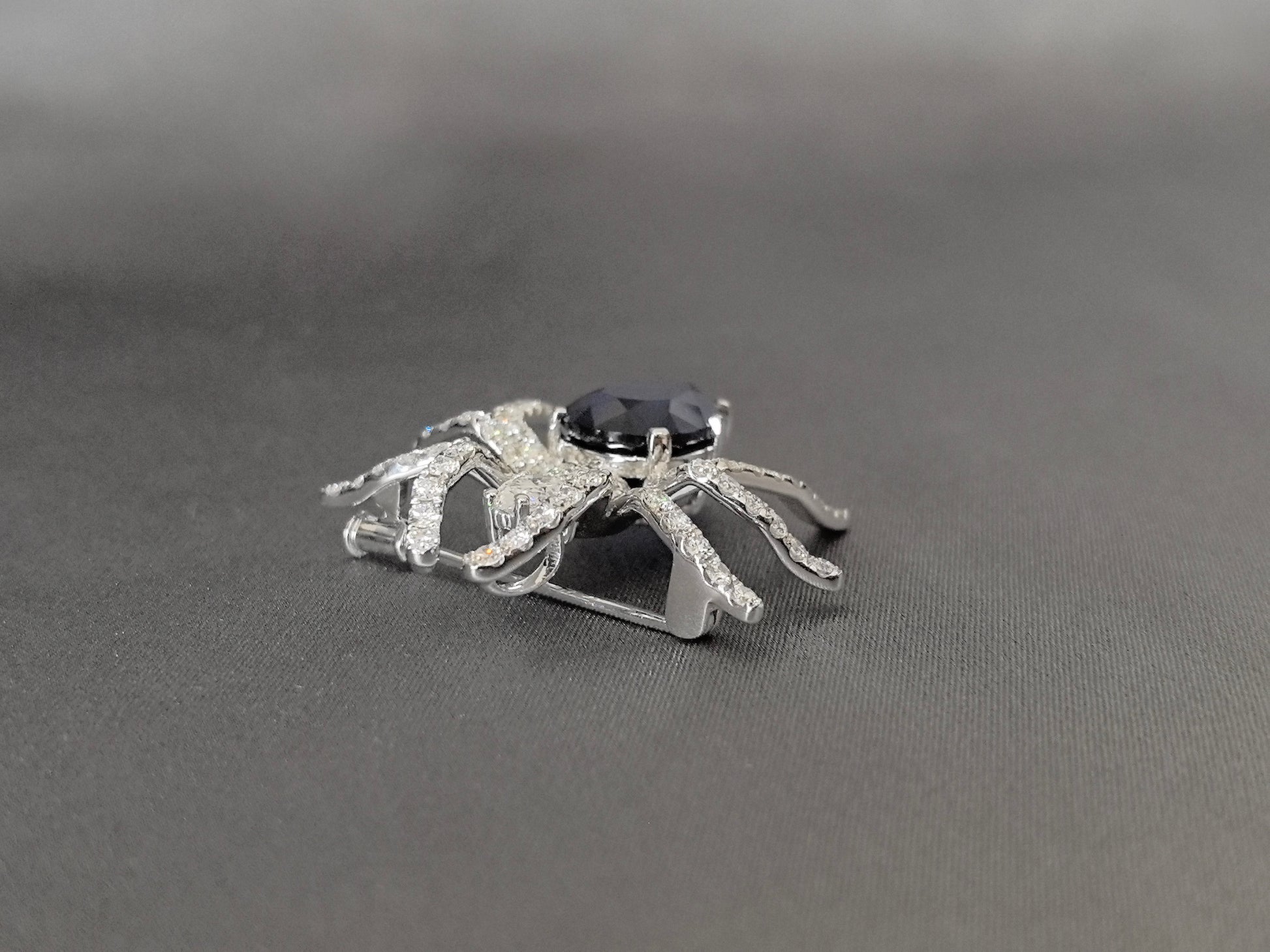 Unveil a masterpiece of artistry and symbolism with this extraordinary spider design brooch, where elegance meets the enigmatic. At its heart rests a captivating pear-cut blue lab-grown sapphire, embodying wisdom and mystery, while the spider's form is meticulously outlined with shimmering round-cut lab-grown diamonds. This striking piece transforms a classic motif into a wearable work of art, perfect for those who dare to express their individuality with sophistication and depth.