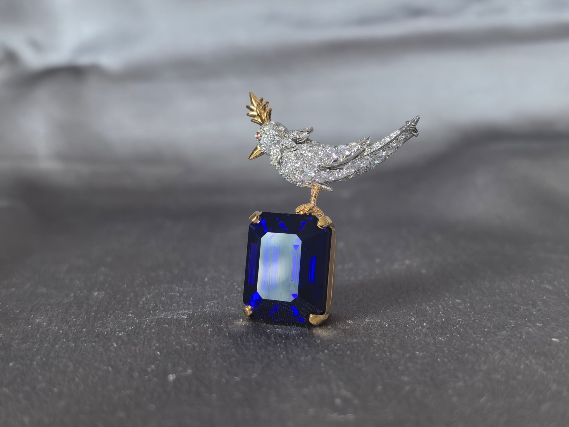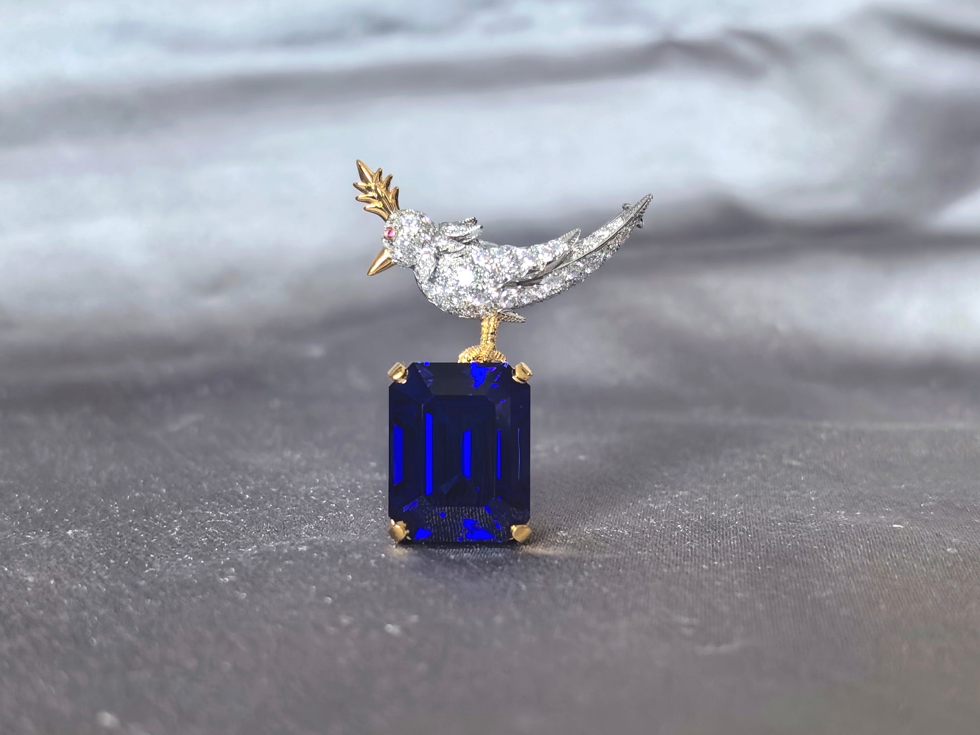 Take flight with this exquisite bird-shaped brooch, where artistry meets ethical luxury. Crafted in gleaming 18K gold, the brooch features a brilliant cut blue lab-grown sapphire as the bird’s heart, symbolizing wisdom and freedom. Every detail—from the delicately engraved feathers to the sparkling diamond accents on the wings—captures the grace of a bird in motion. This piece is a wearable masterpiece for those who cherish nature, craftsmanship, and timeless elegance.