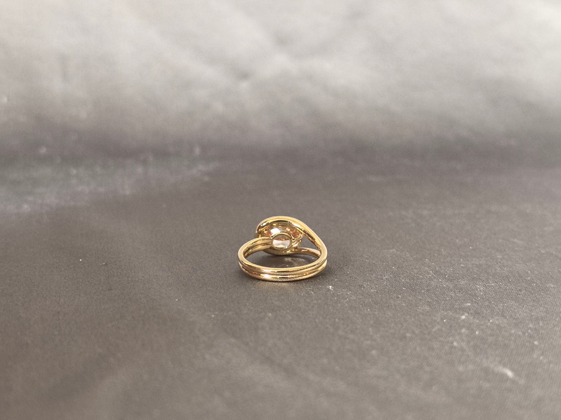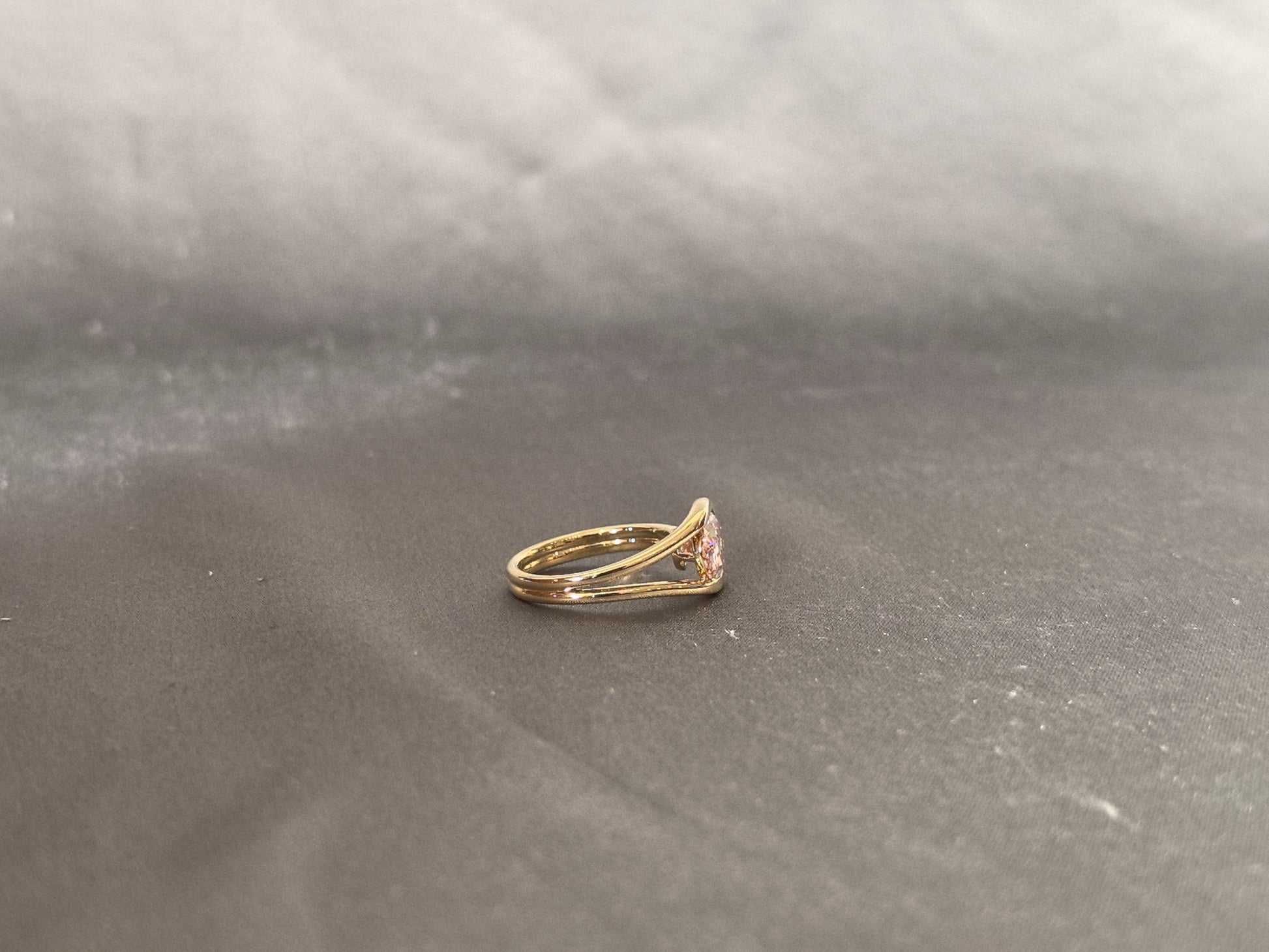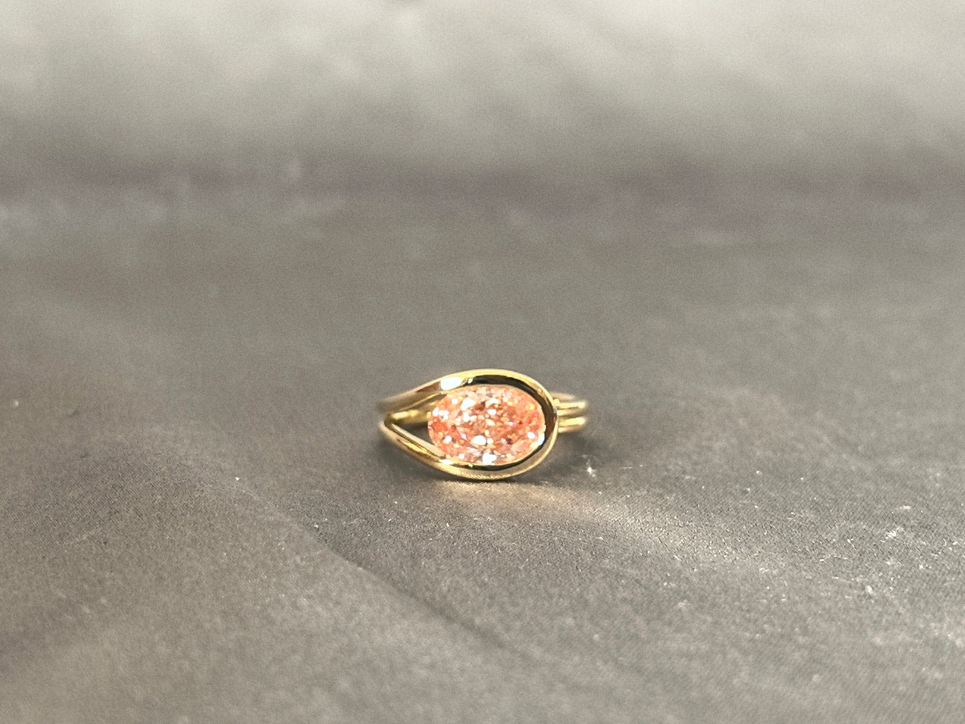 The pink diamond is cradled in a full bezel setting, a sleek, modern choice that wraps the stone in a smooth, protective frame of warm gold. This setting not only secures the diamond with unparalleled safety but also creates a clean, uninterrupted silhouette that emphasizes the stone's beautiful color and form. The low-profile design ensures a snag-free, comfortable fit for everyday wear.
