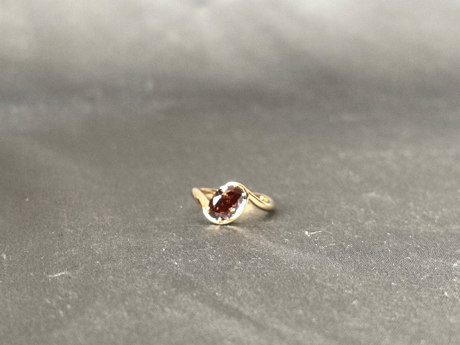 This distinctive pinky ring redefines modern elegance with its sculptural form and warm, earthy tones. At its heart rests a 1 carat oval cut brown lab grown diamond, a stone whose rich cognac hue offers a sophisticated alternative to traditional colorless diamonds, evoking warmth, depth, and quiet confidence.