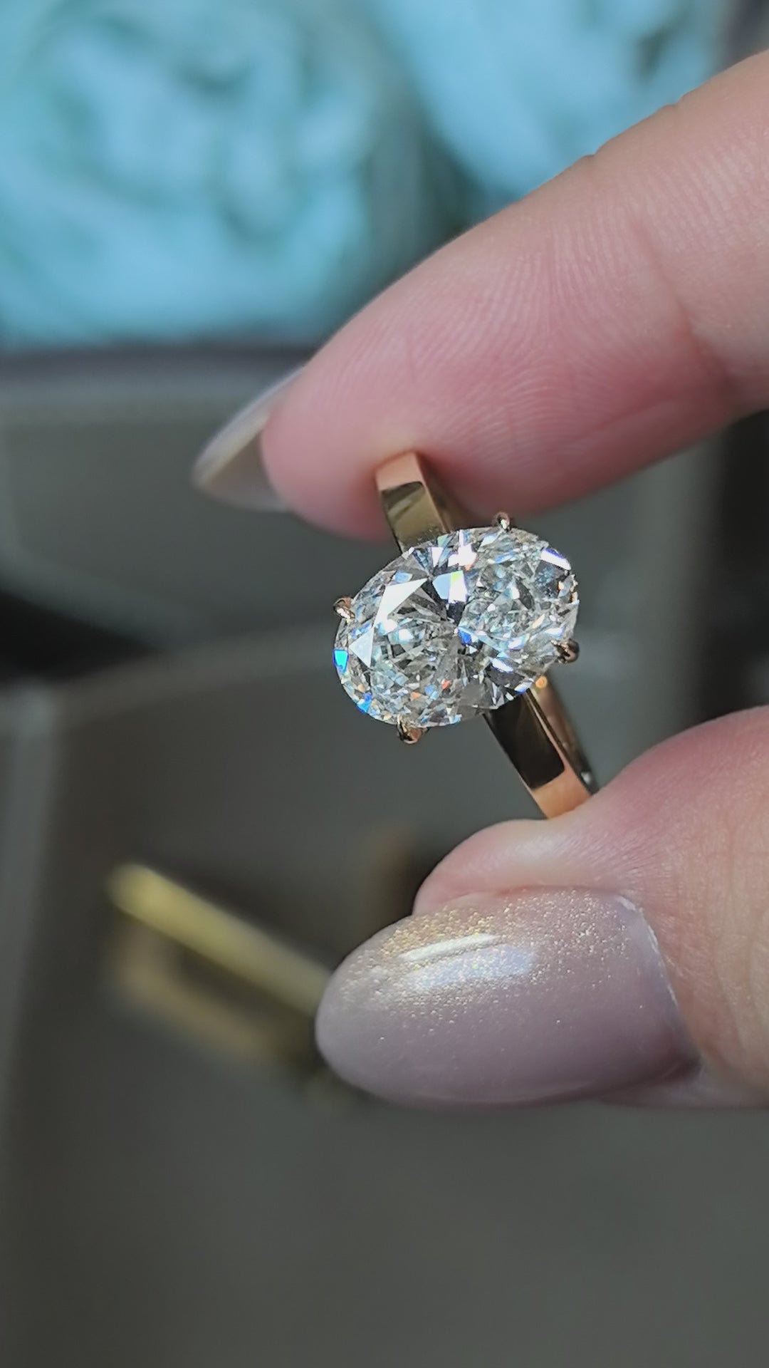 - Embrace the beauty of simplicity with this exquisite oval lab-grown diamond solitaire ring. Featuring a brilliantly cut oval diamond set on a flat, plain band, this design highlights the stone’s natural sparkle and elongated silhouette without unnecessary distractions. Crafted in luxurious 14K gold, this ring is a timeless piece that effortlessly blends modern minimalism with enduring elegance, perfect for those who appreciate understated luxury.