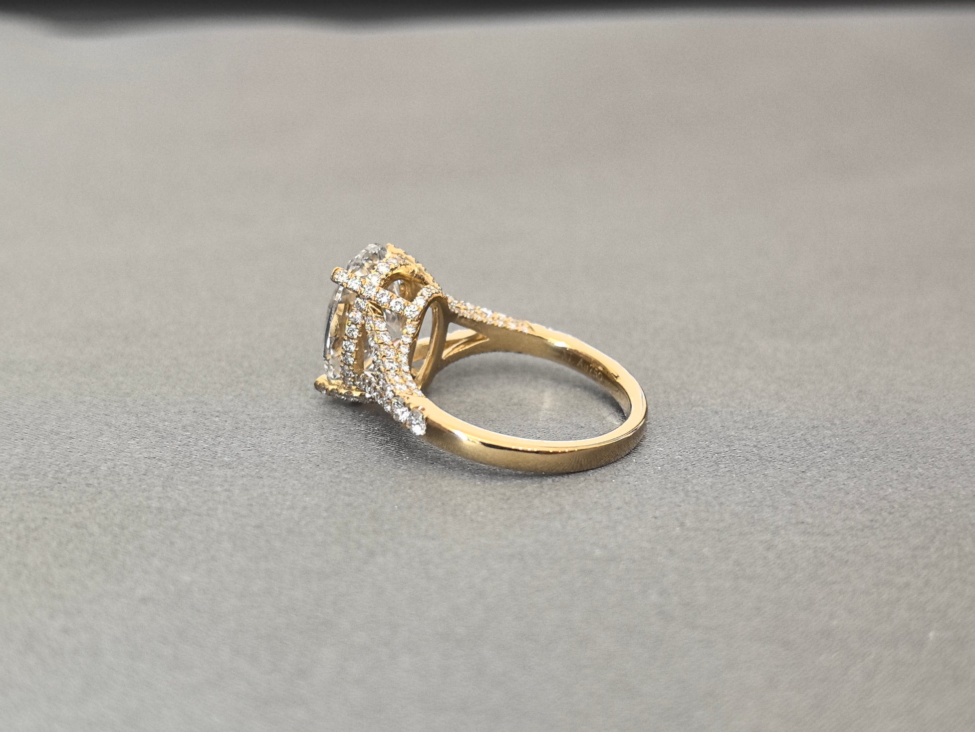 Oval Lab Diamond Split Shank Ring | Hidden Halo & Half Pavé Band