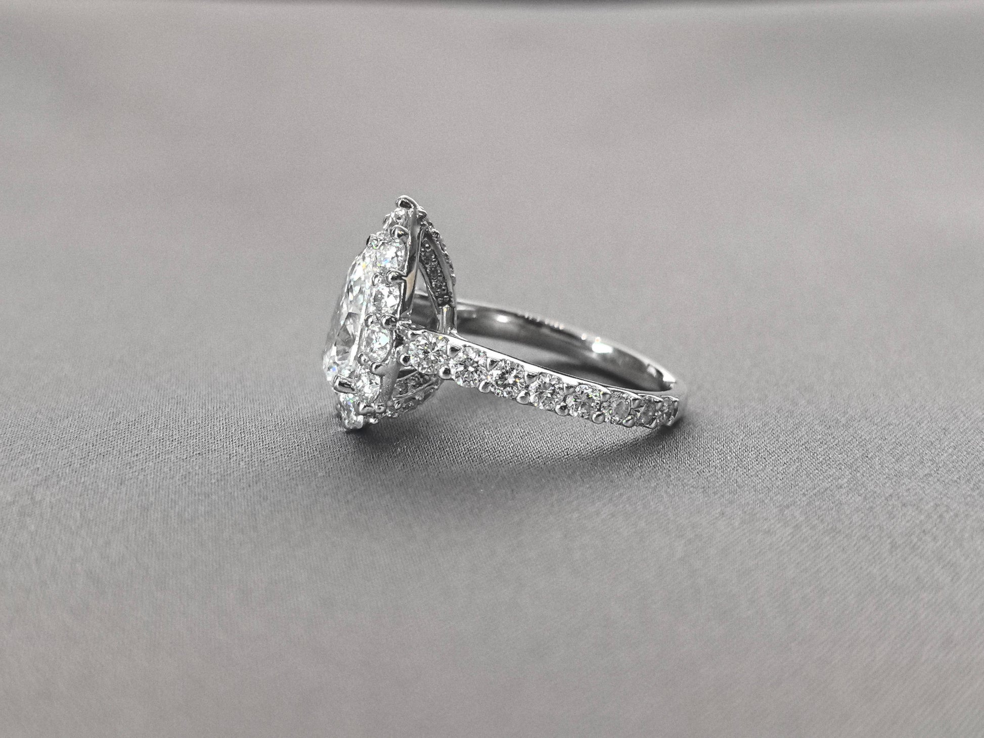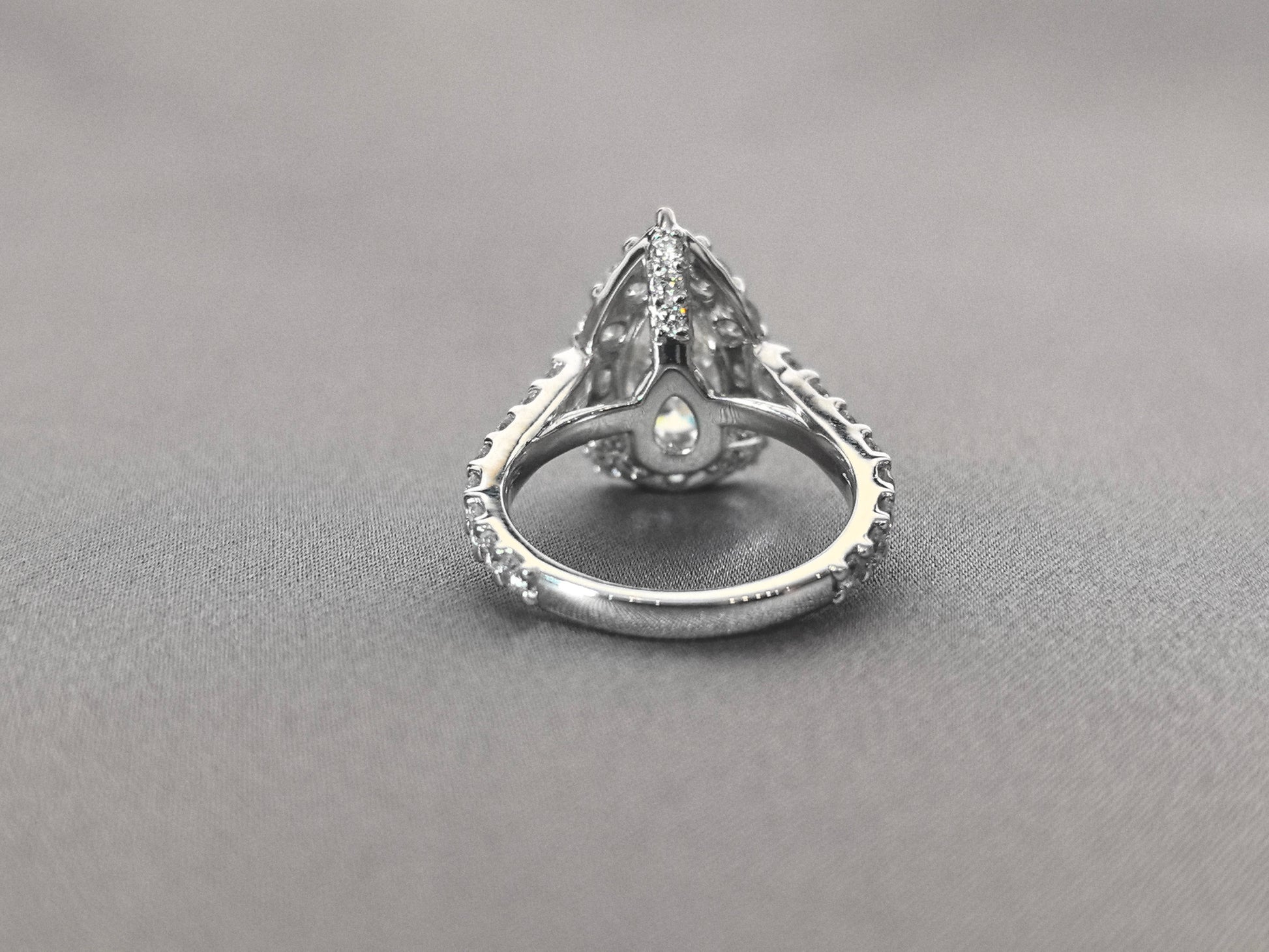 Pear Cut Lab Grown Diamond Ring | Full Halo & 2/3 Pavé Band