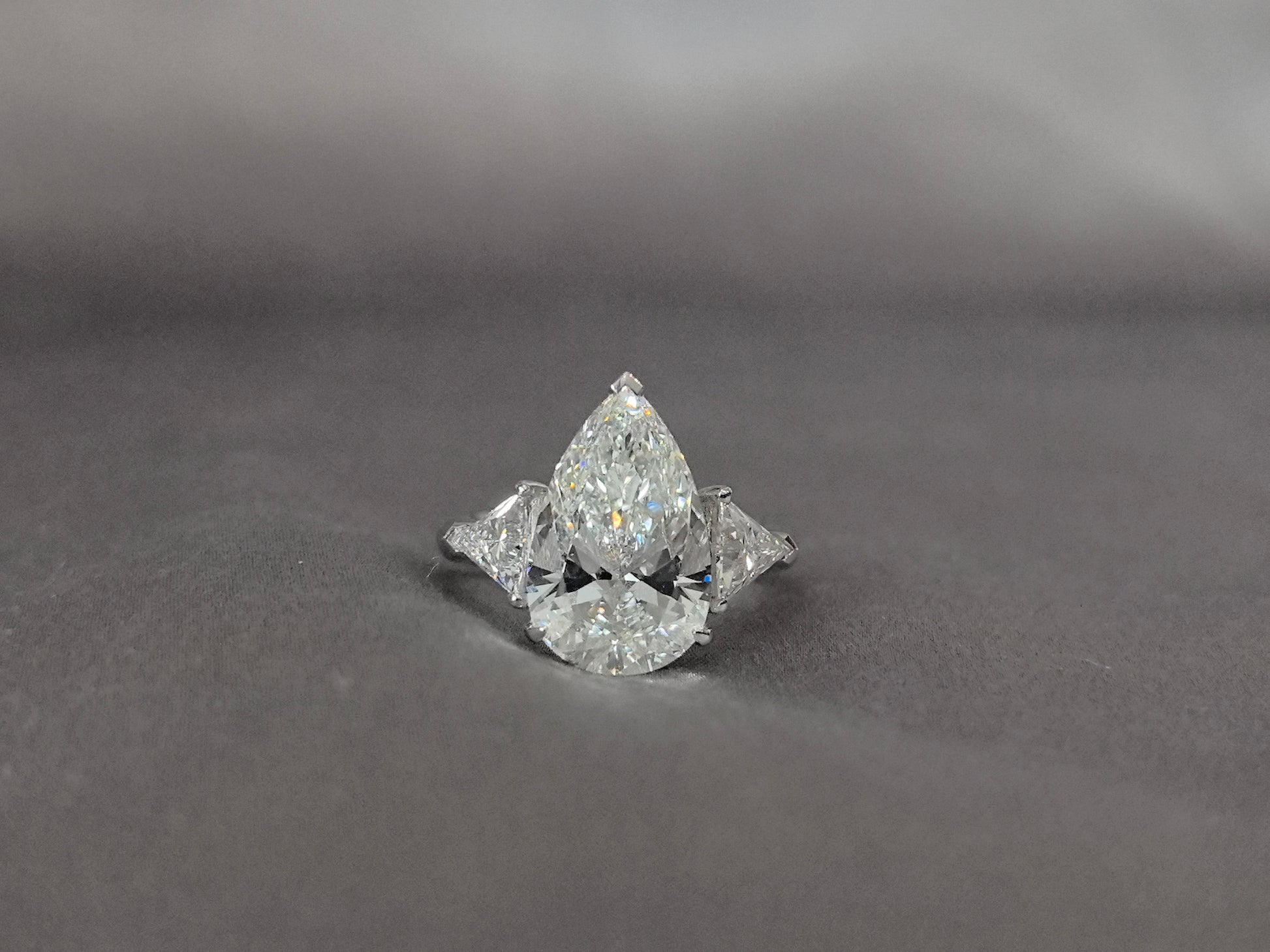 A captivating symphony of curves and angles. This distinctive trilogy ring features a graceful pear-cut lab-grown diamond at its center, known for its elegant teardrop silhouette. It is dynamically flanked by two trillion-cut lab-grown diamonds, whose unique triangular shapes add brilliant sparkle and a striking geometric contrast. This masterful combination creates a piece that is both soft and structural, flowing with artistic harmony.