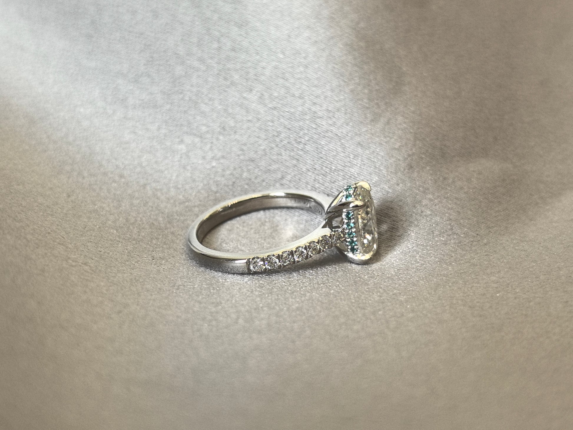 Dainty Paraiba Hidden Halo Oval Lab Diamond Ring