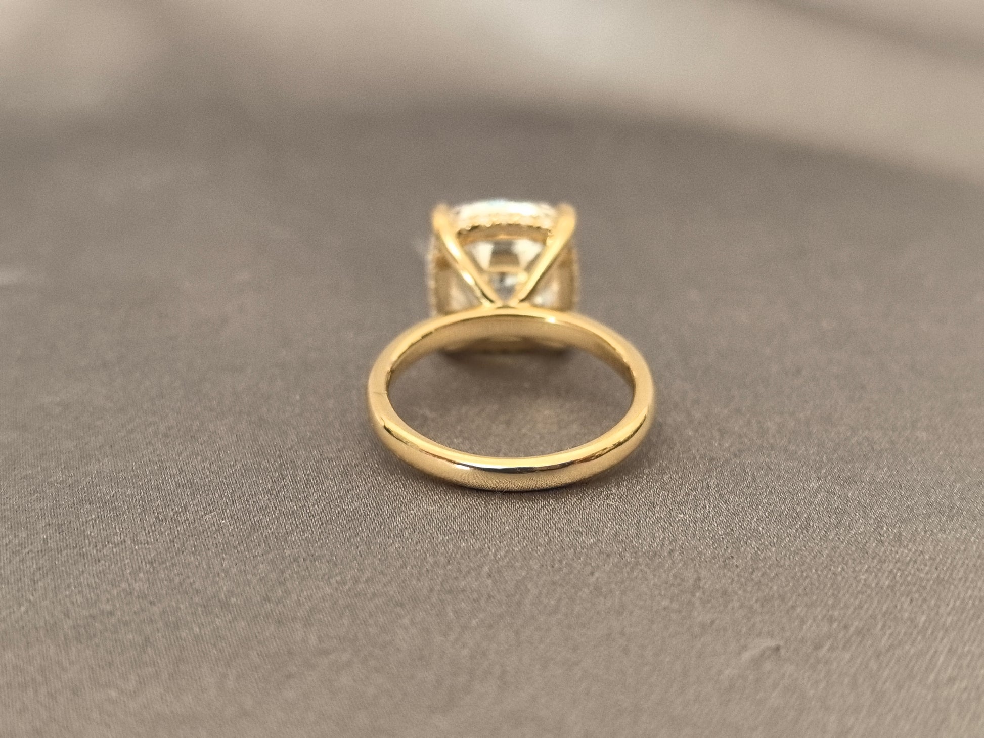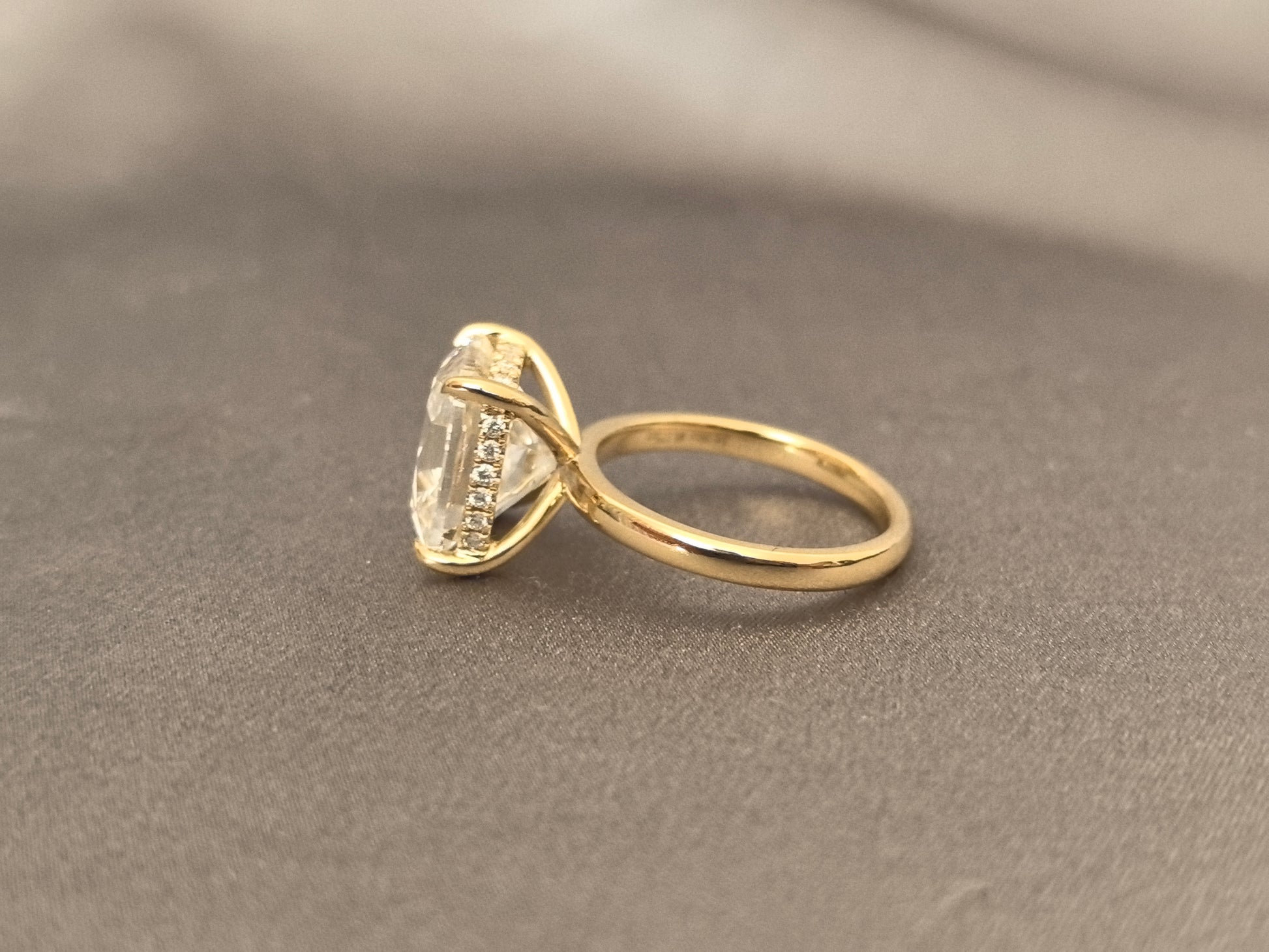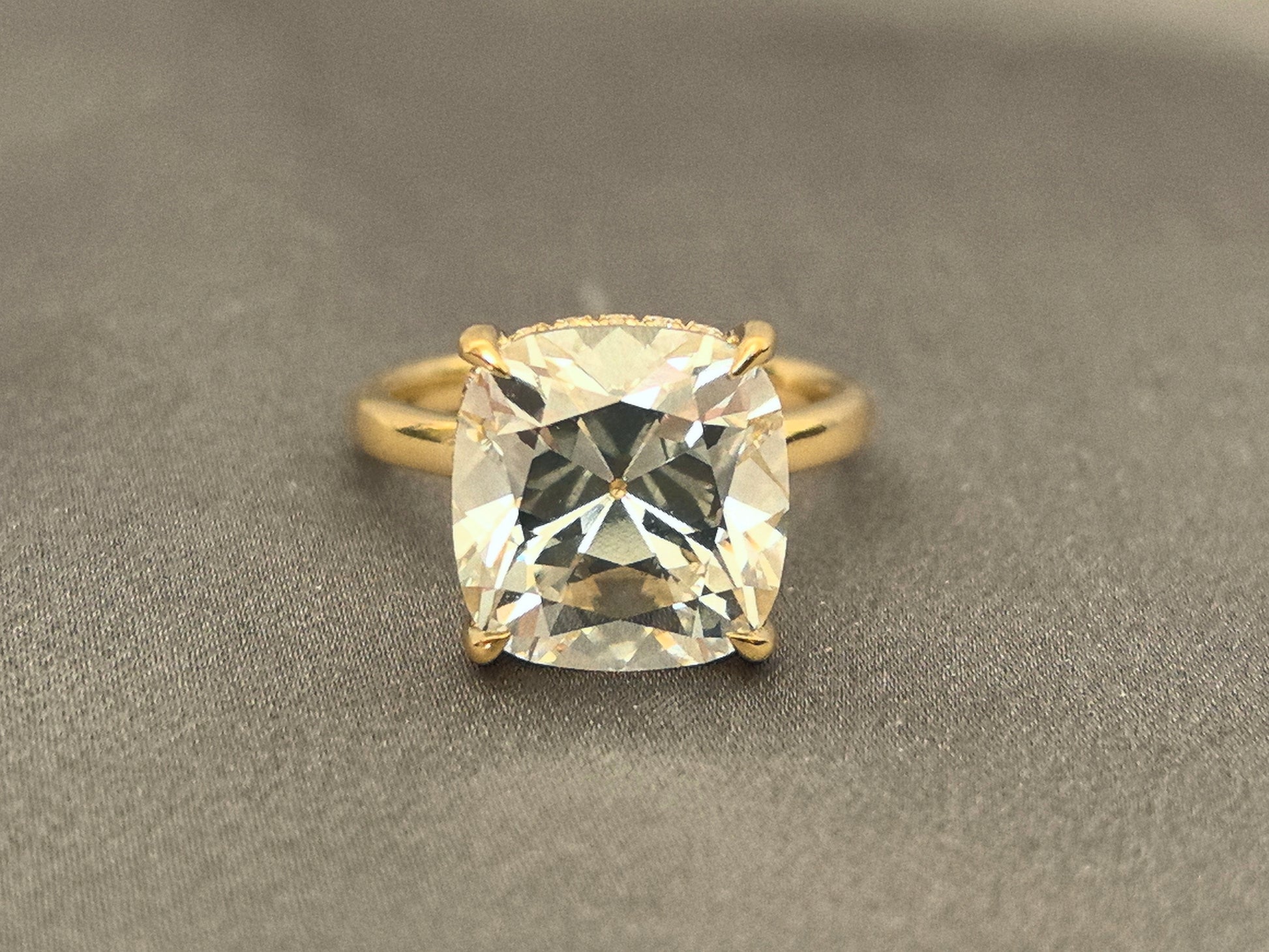 Elegance with a secret. This timeless solitaire features a characterful old mine cut diamond in a classic setting. Its true magic is revealed from within: a delicate hidden halo of diamonds encircles the base, casting a subtle, radiant glow upwards. The definition of understated luxury.