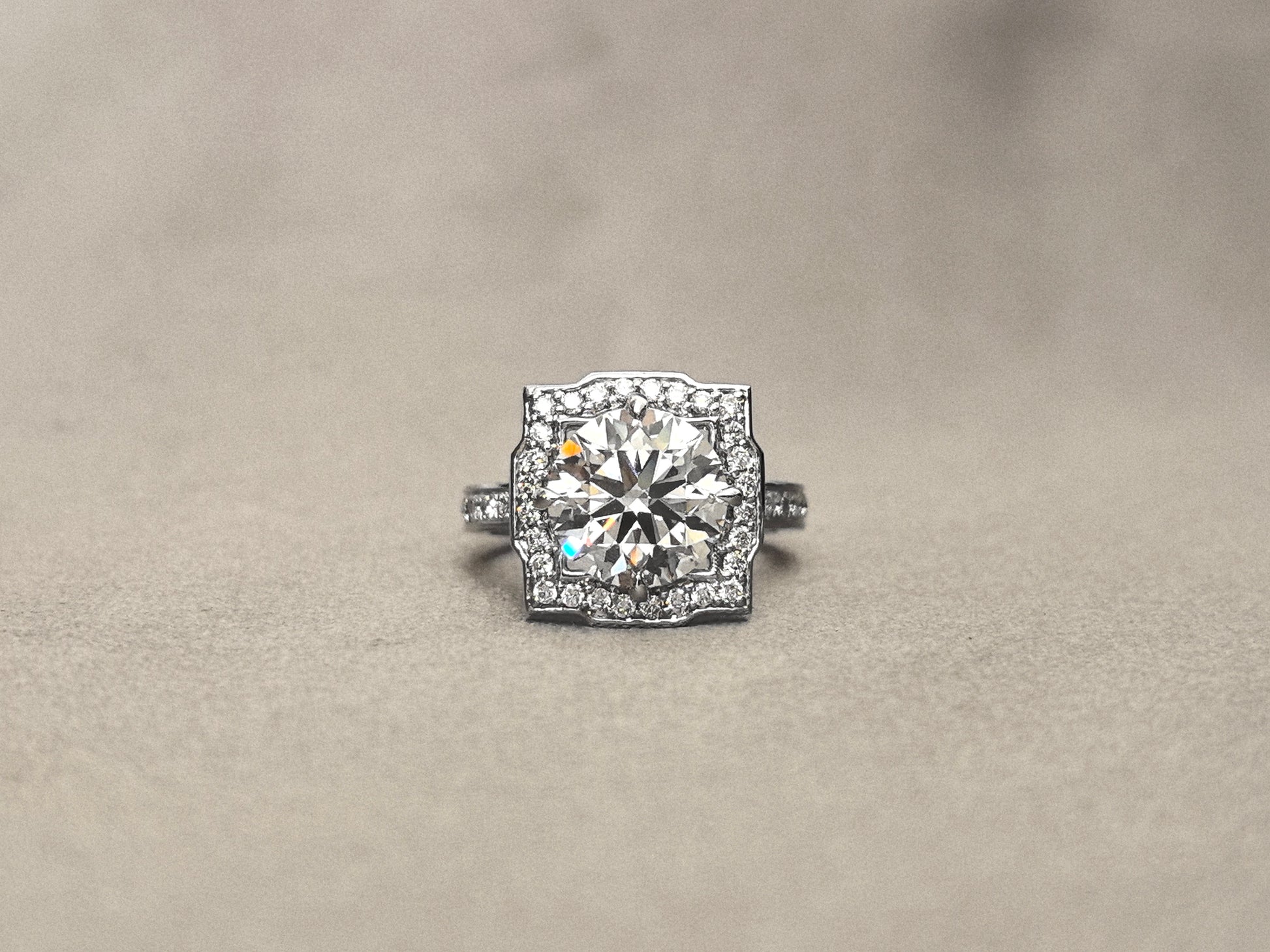 Available in carat weights from 1 to 20 (with the half-eternity diamonds complementing the main stone’s size), US ring sizes 3 to 12, and with metal options of 14K/18K yellow gold, rose gold, white gold, or platinum, it offers endless possibilities for personalization.