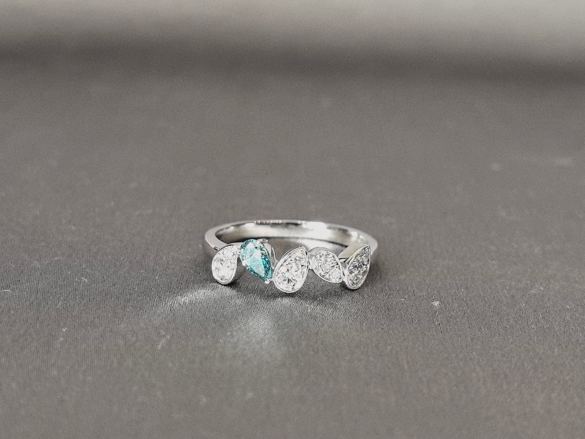 Marquise Diamond & Paraiba Band | Stackable Ring | Lab-Grown Elegance | 14K Gold