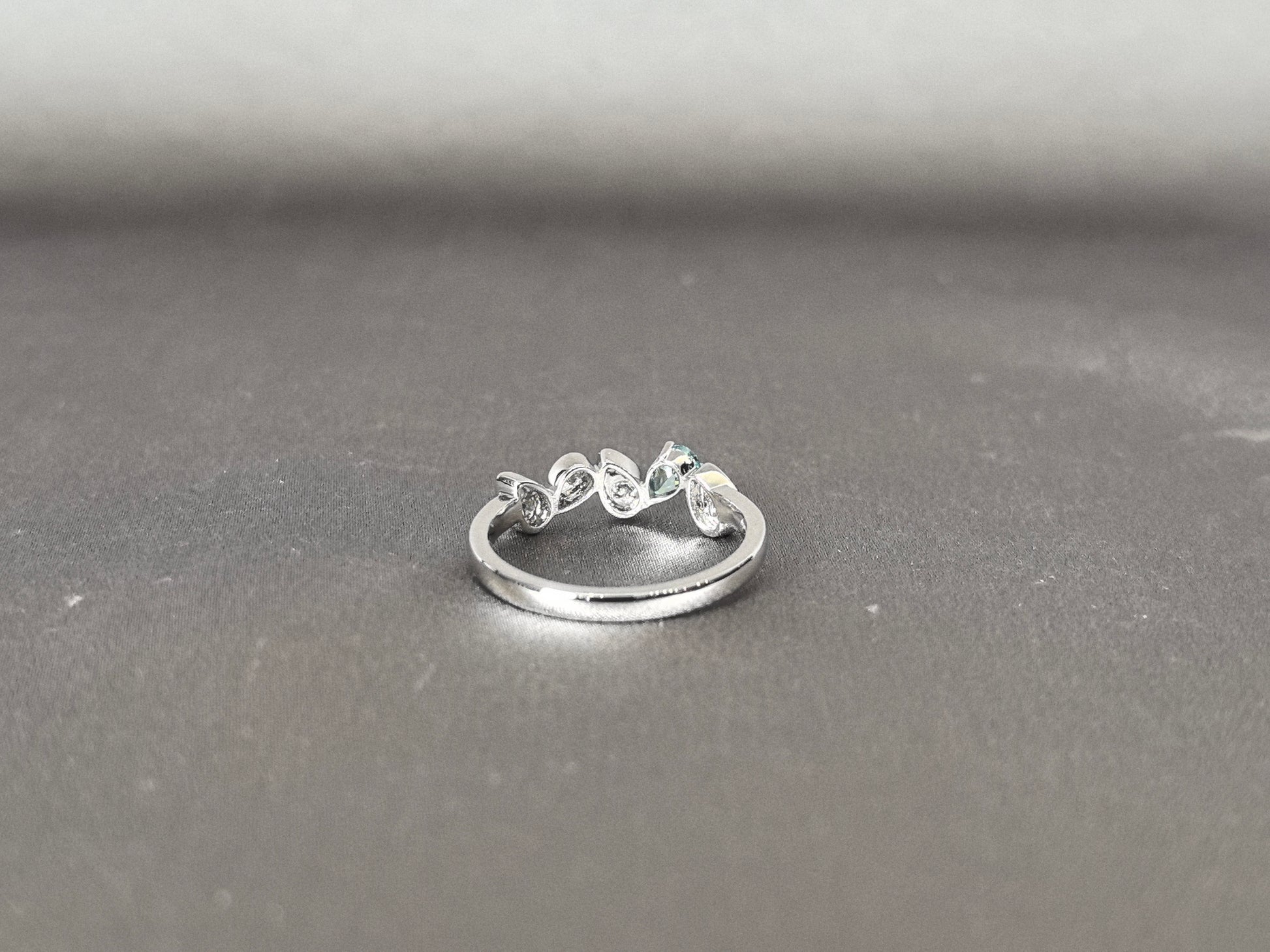 A band that captures the light and the imagination. This exquisite ring features a continuous line of shimmering marquise-cut lab-grown diamonds, accented by the captivating hue of rare paraiba tourmaline (lab-created). Designed for versatility, it makes a stunning statement on its own or harmonizes beautifully in a stack, allowing you to curate a look that is uniquely yours.