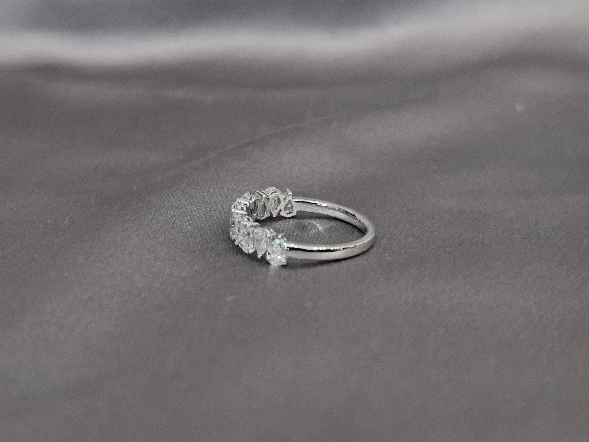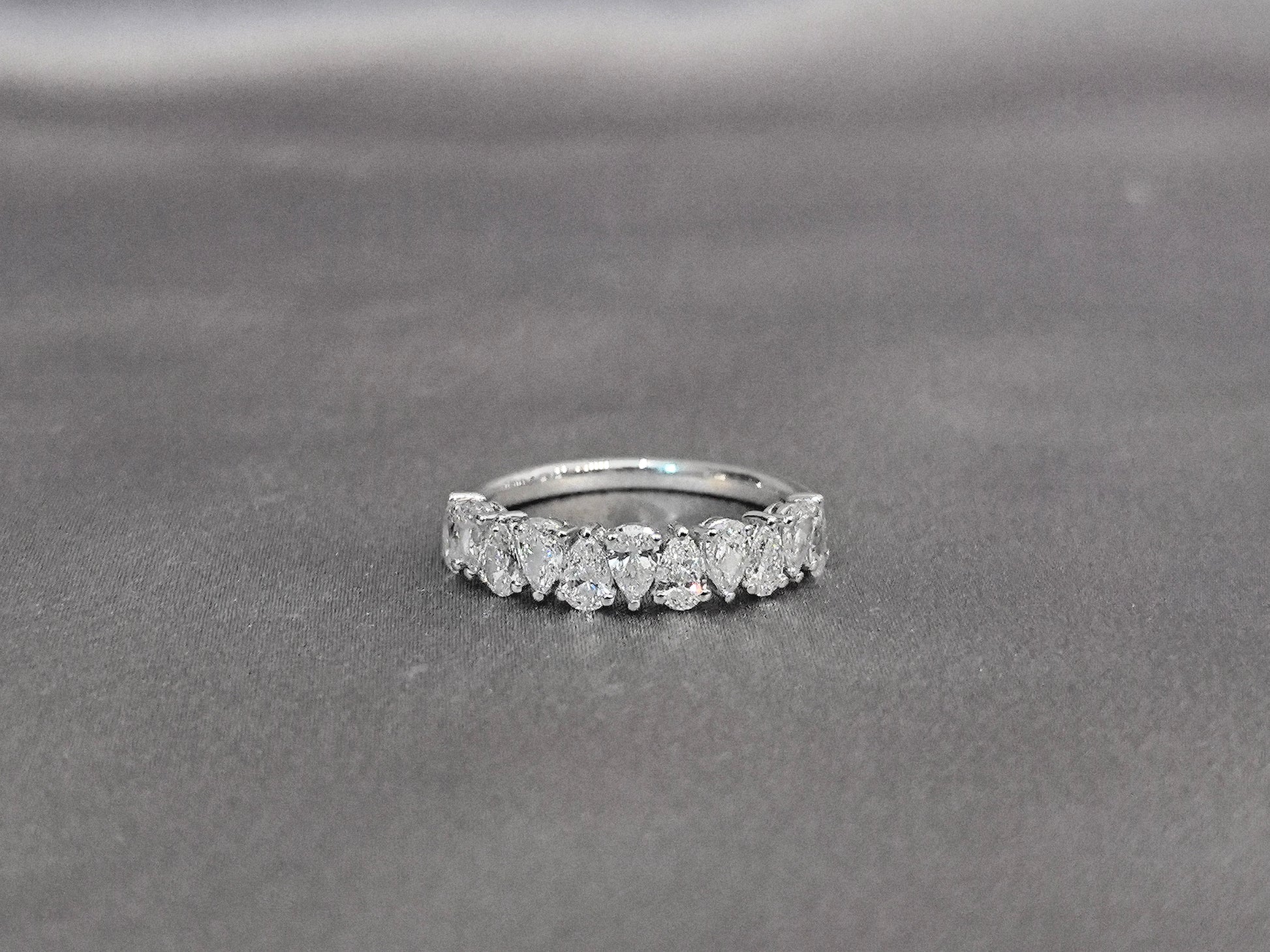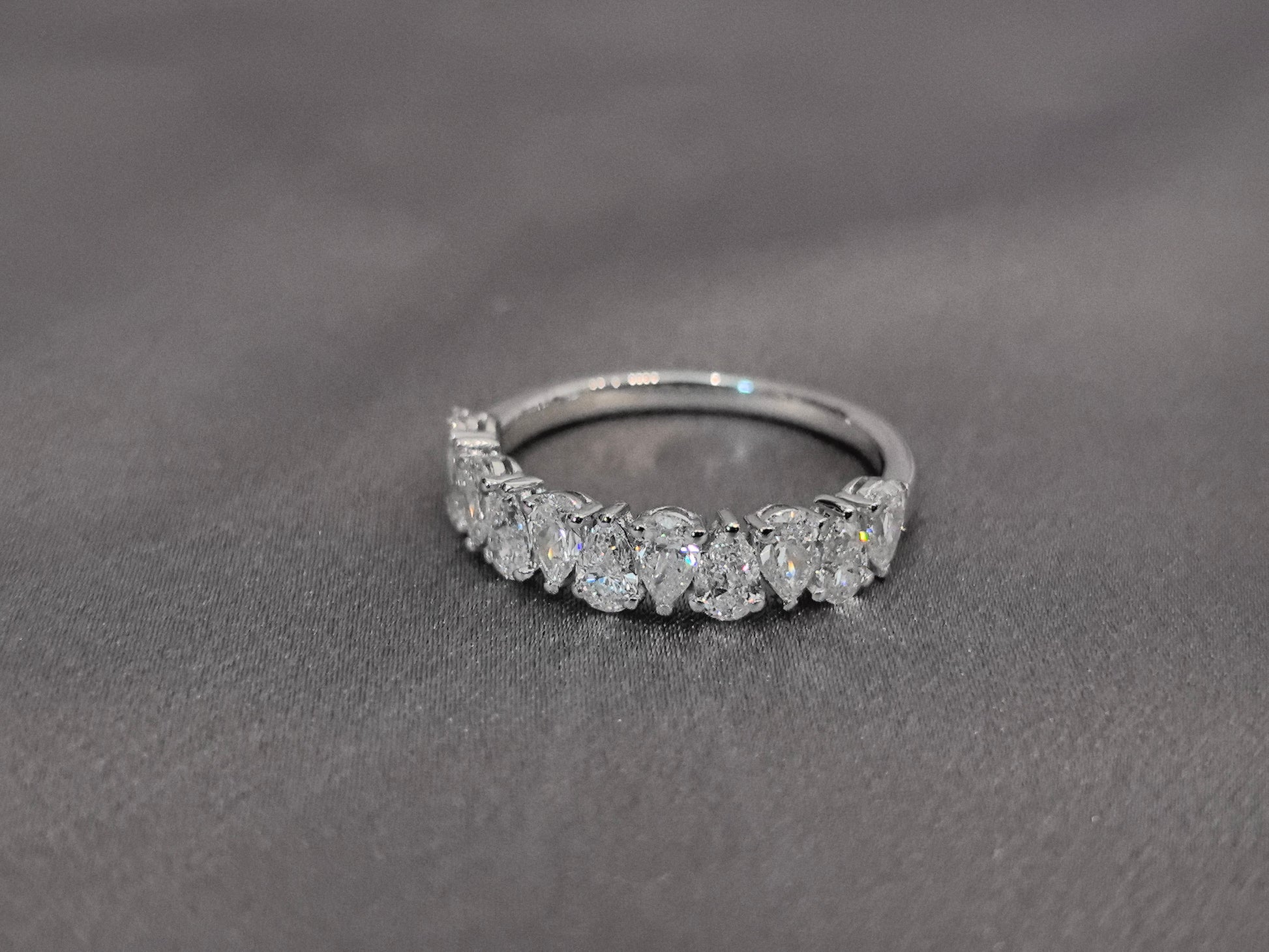 Embrace the elongated elegance of this pear cut lab diamond half eternity band, where classic design meets modern ethical luxury. Featuring a series of marquise-cut lab-grown diamonds set along the top half of the band, this ring offers a dazzling display of brilliance and a flattering finger-length effect. Crafted in luxurious 14K gold, its sleek and sophisticated design makes it perfect for both standalone wear and stacking with other rings.