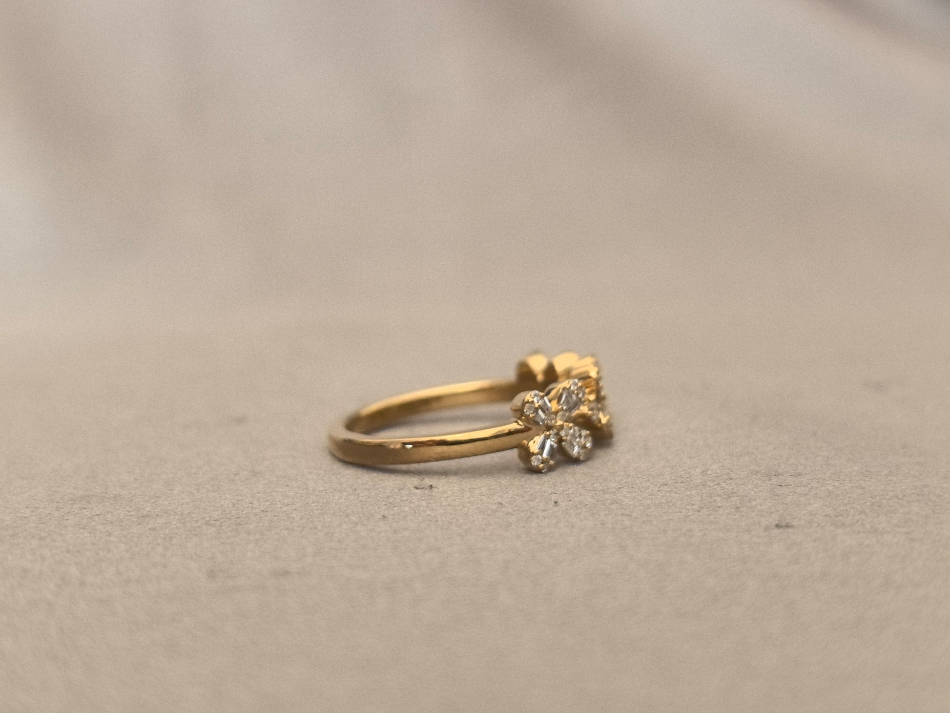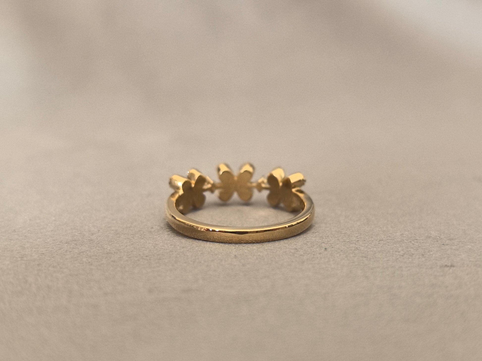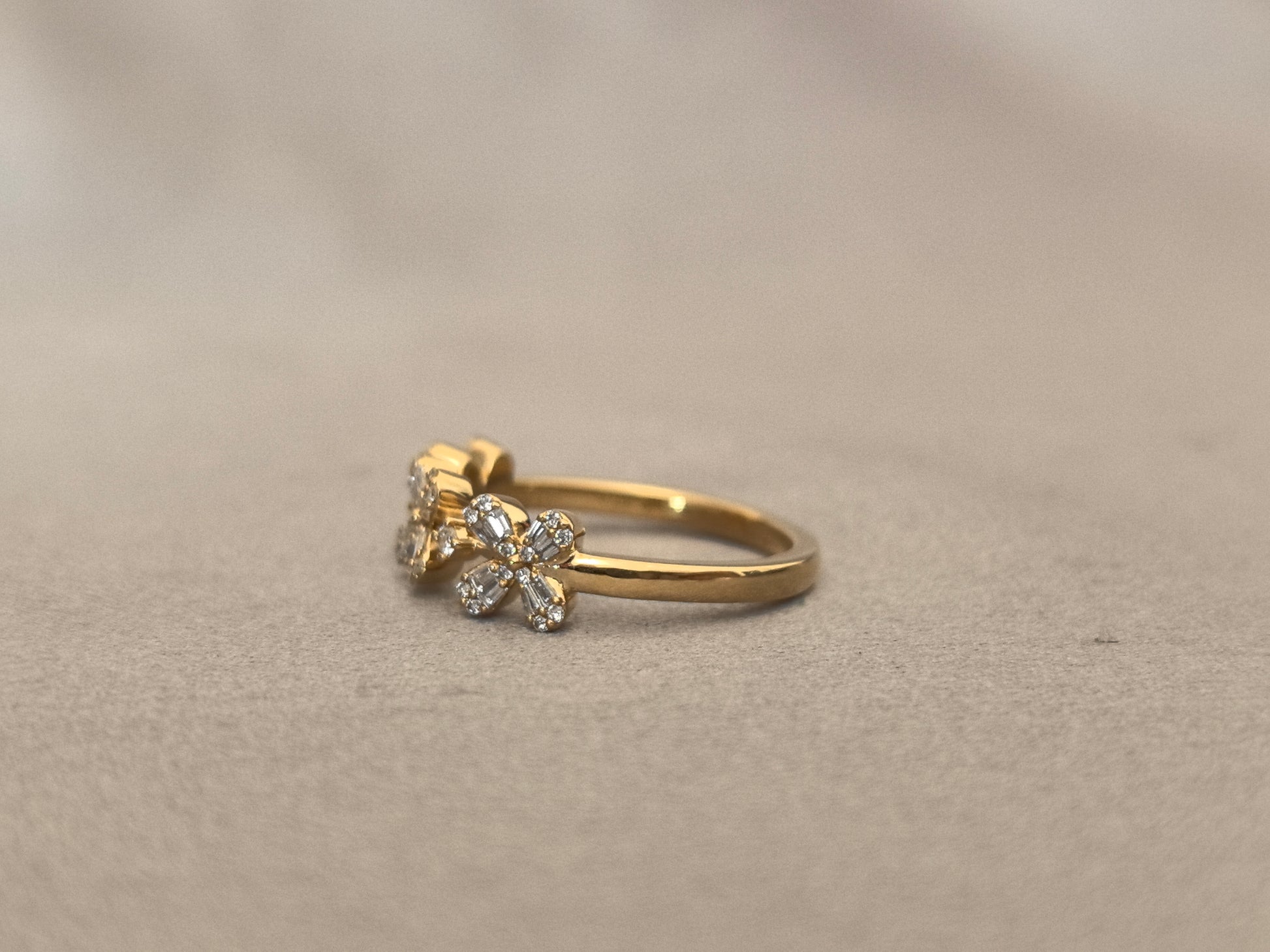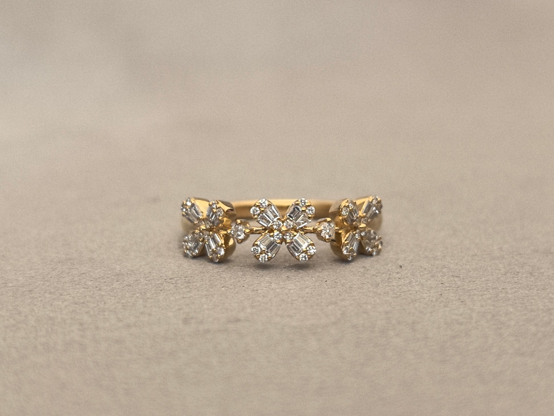 Capture the timeless elegance of a bygone era with our Three-Petal Floral Half-Eternity Band. This exquisite ring features a delicate sequence of three-diamond floral motifs, gracefully blooming across the top half of the band. Crafted in warm 18K gold and set with brilliant lab-grown diamonds, this piece is a perfect blend of botanical beauty and vintage charm, designed to be a daily reminder of life's delicate and beautiful moments.
