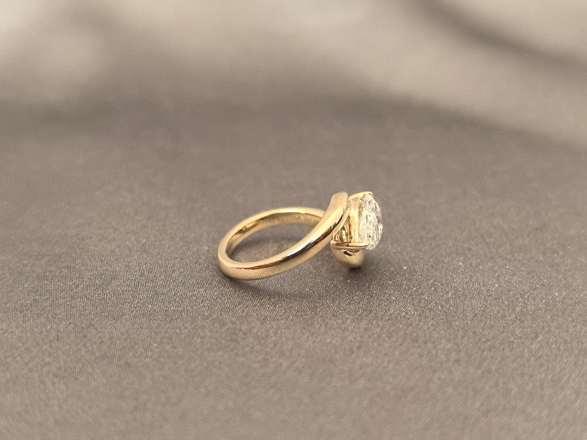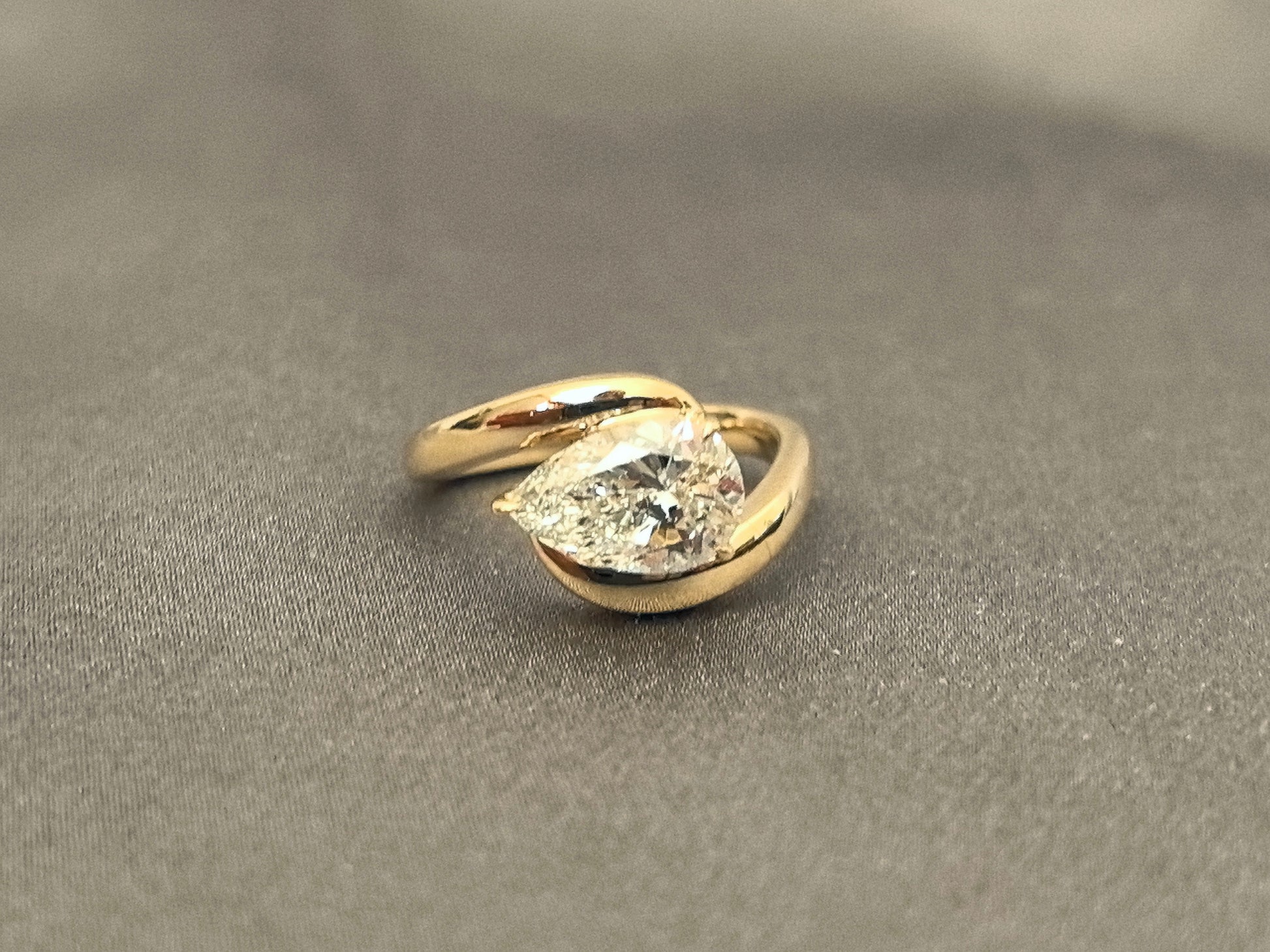 A small revolution on your smallest finger. This artistic pinky ring centers a glowing pear-cut lab diamond within an organic, swirling surround, all set upon a dynamically twisted 14K gold band. A wearable piece of sculpture that defies convention.