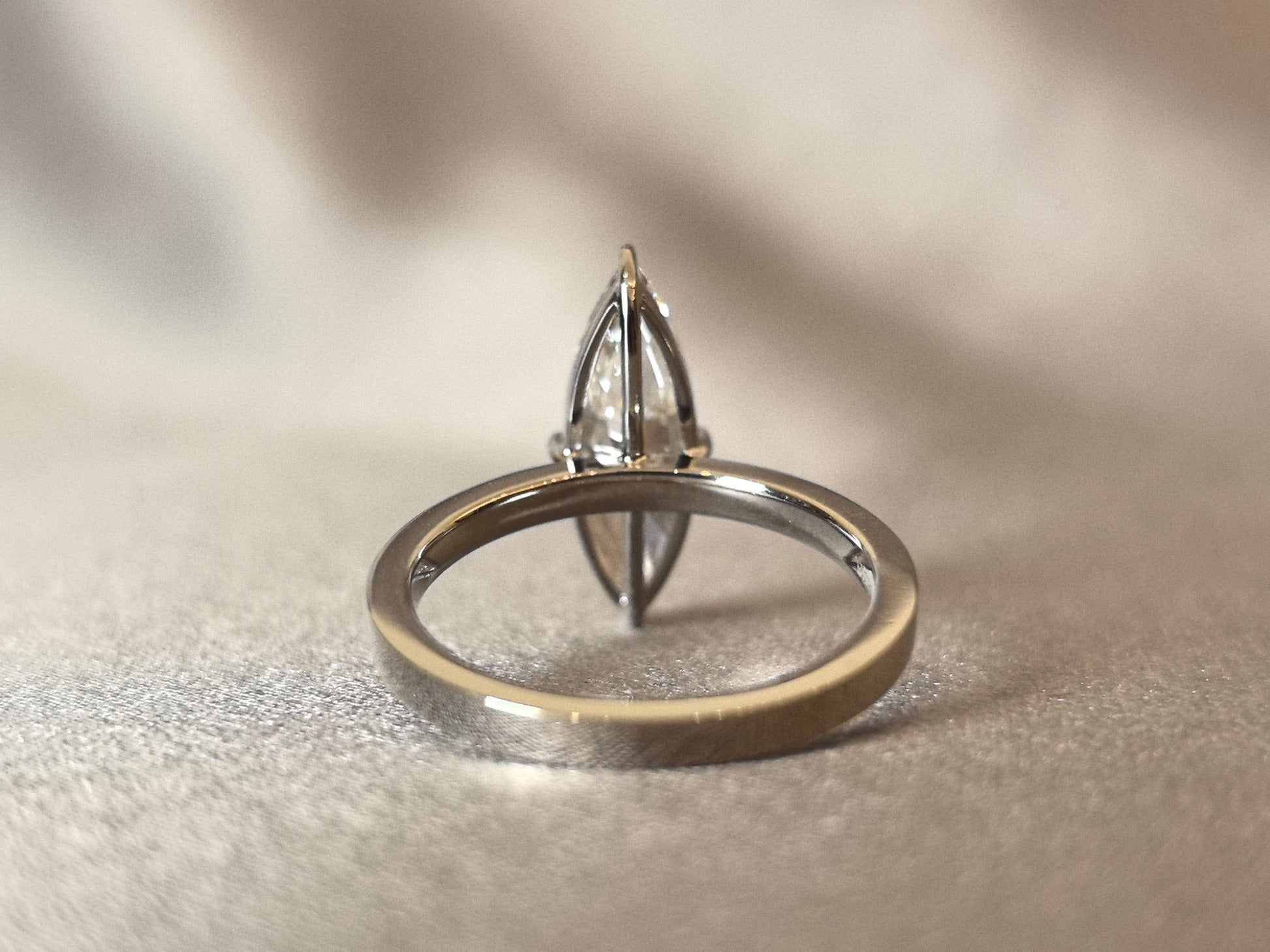 This ultra-sleek ring features a marquise-cut lab-grown diamond set low on an extra-long, smooth band. The elongated proportions create a striking, modern silhouette that is both minimalist and impossibly chic.