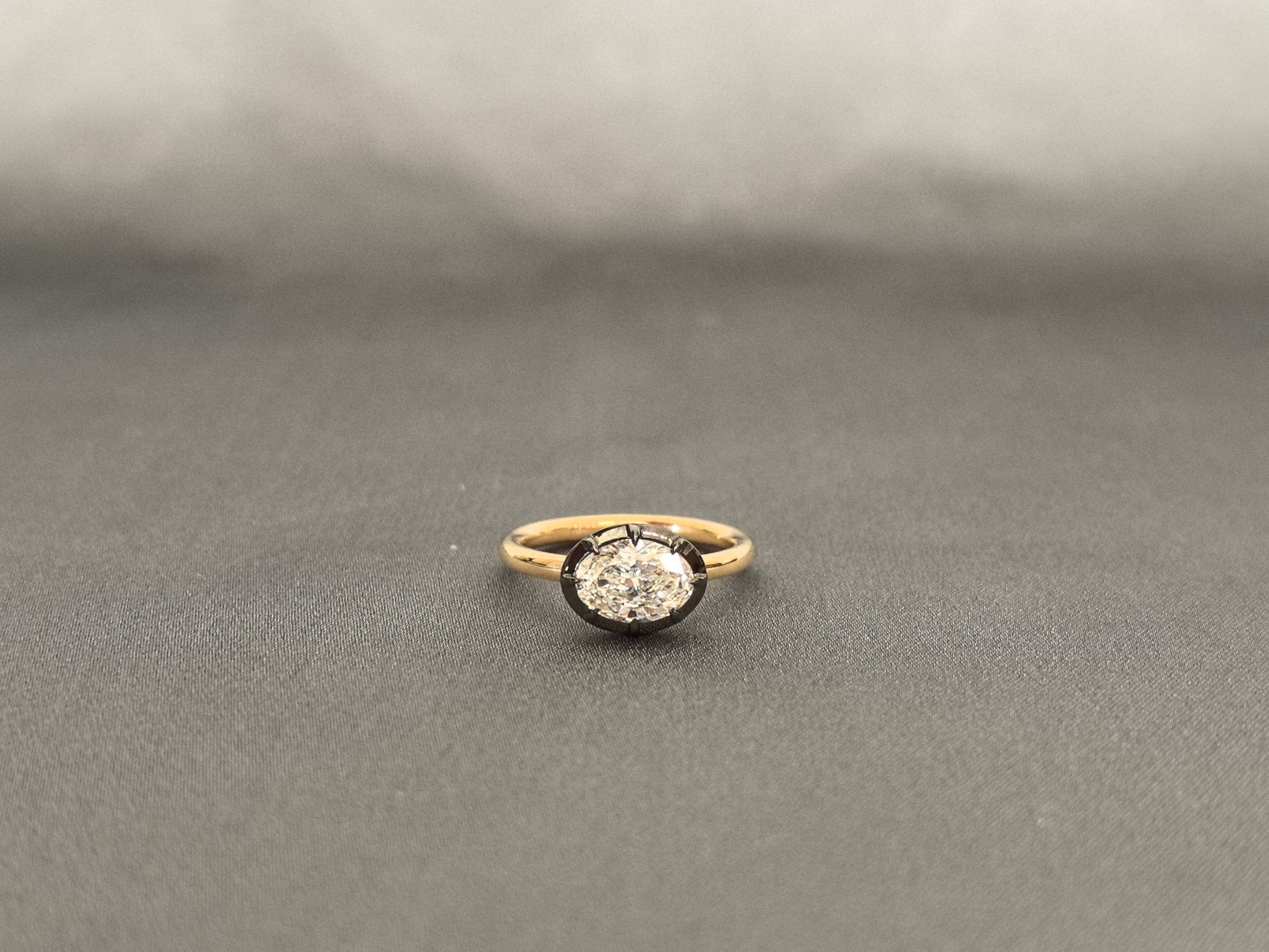Break away from tradition with this elegantly modern horizontal oval lab diamond ring. Featuring a beautifully proportioned oval-cut lab-grown diamond set in an east-west orientation, this design offers a fresh, contemporary take on classic elegance. The horizontal setting elongates the finger with a subtle, architectural flair, while the 14K gold band provides a minimalist yet luxurious foundation. Perfect for those who appreciate understated sophistication and ethical luxury.