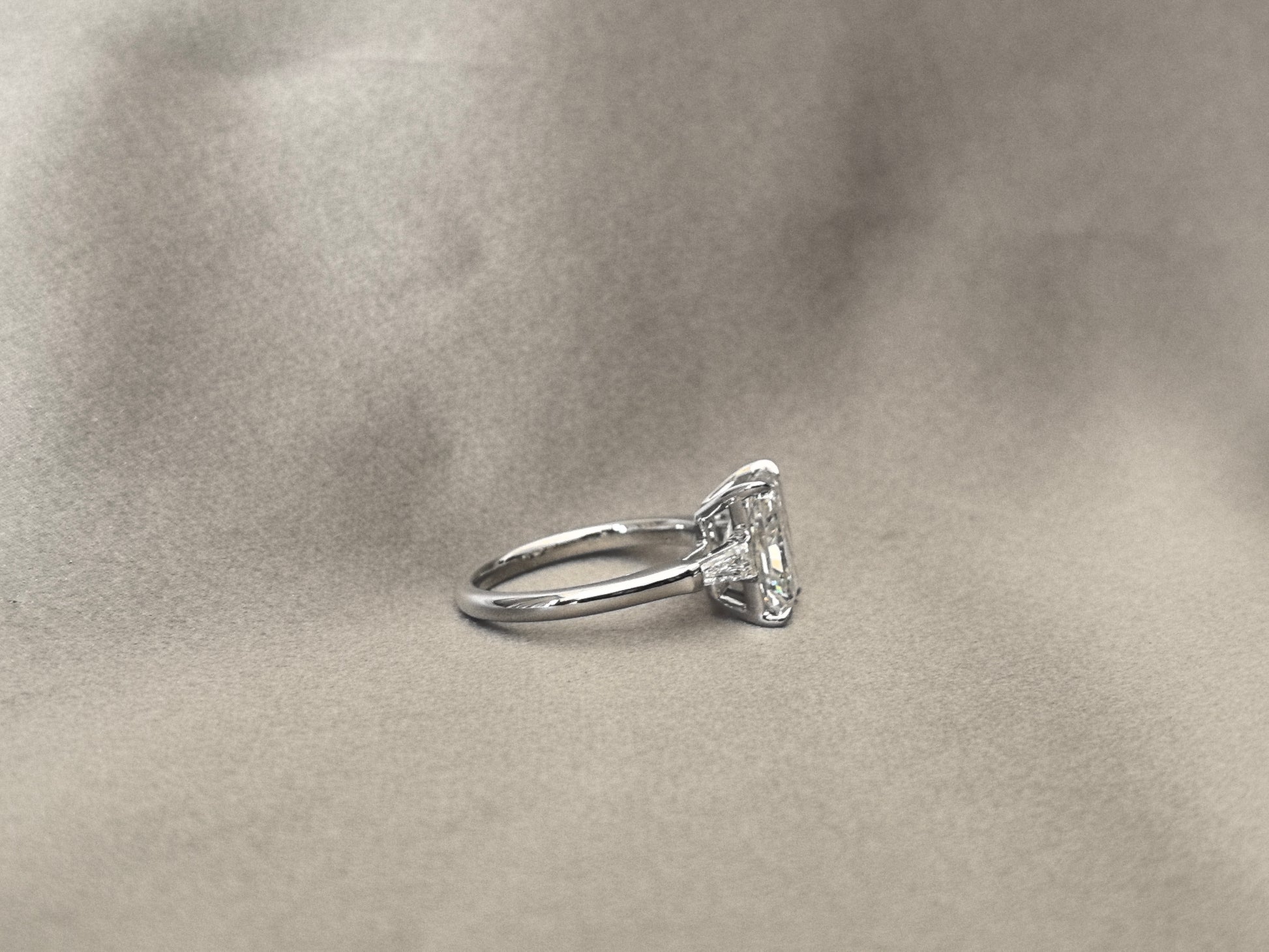 Radiant Cut Trilogy Ring | Baguette Sidestones | Geometric Brilliance | Lab-Grown Diamonds