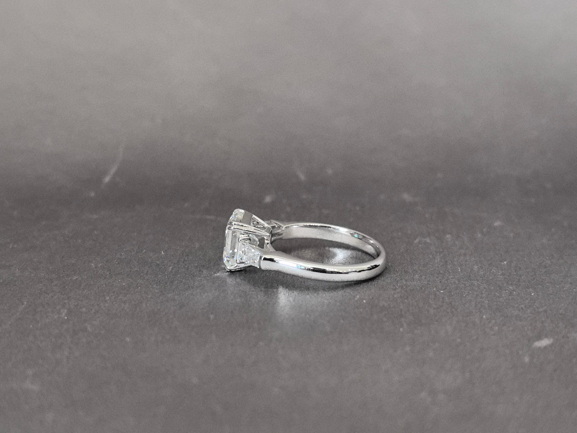Asscher Cut Lab Diamond Ring | Three-Stone Baguette Design | Architectural Elegance | Lab-Grown