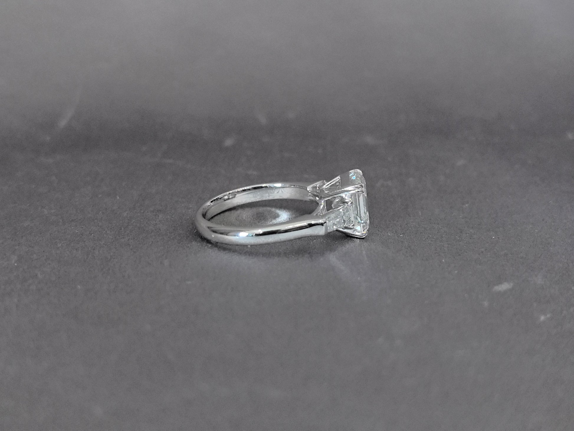 A masterpiece of geometric precision and understated power. This distinguished three-stone ring features a captivating Asscher-cut lab-grown diamond at its center, flanked by two linear baguette-cut sidestones. The clean, architectural lines of the Asscher cut harmonize perfectly with the sleek baguettes, creating a composition that is both简约大气 (refined and impactful) and timelessly elegant.