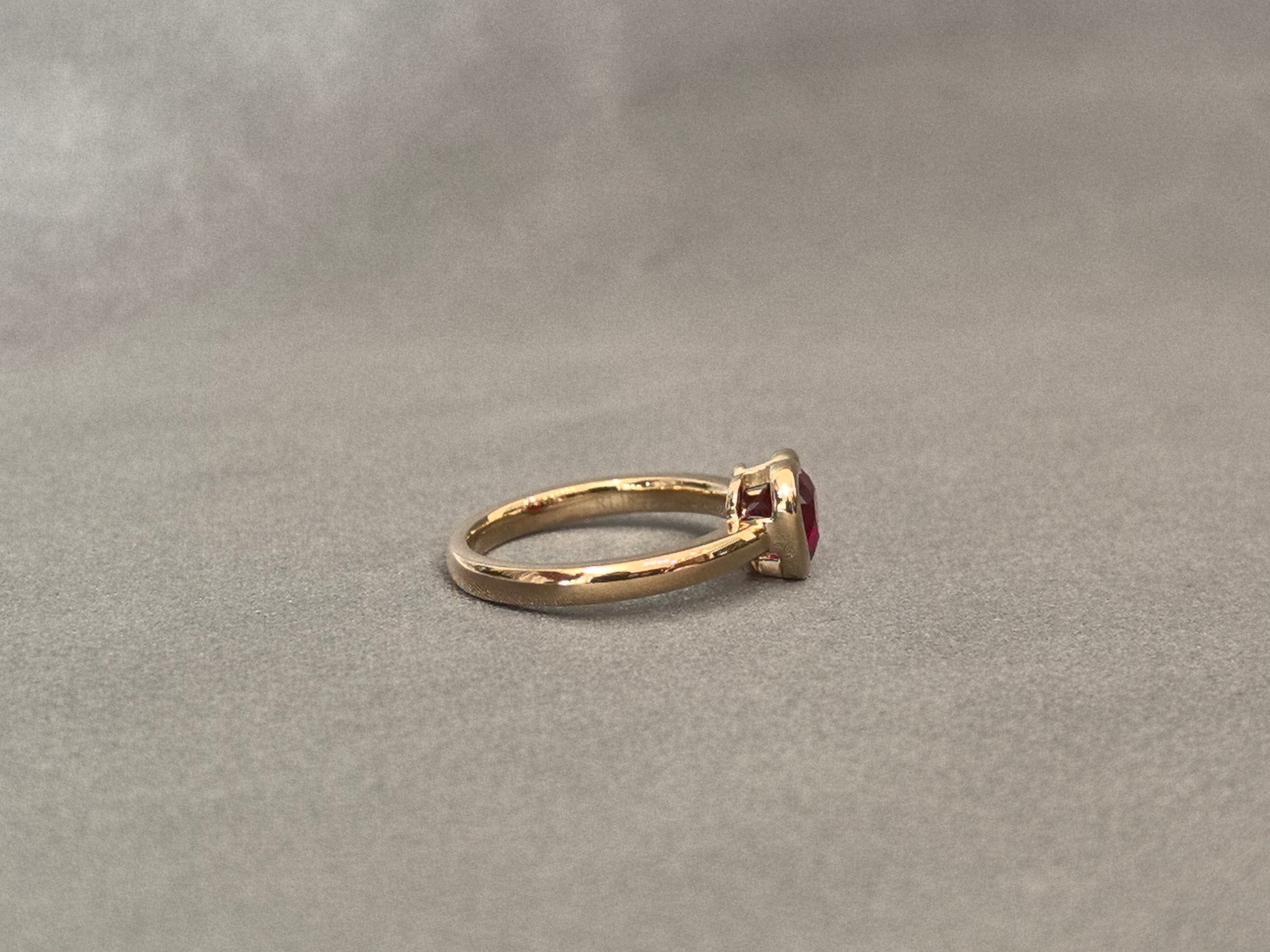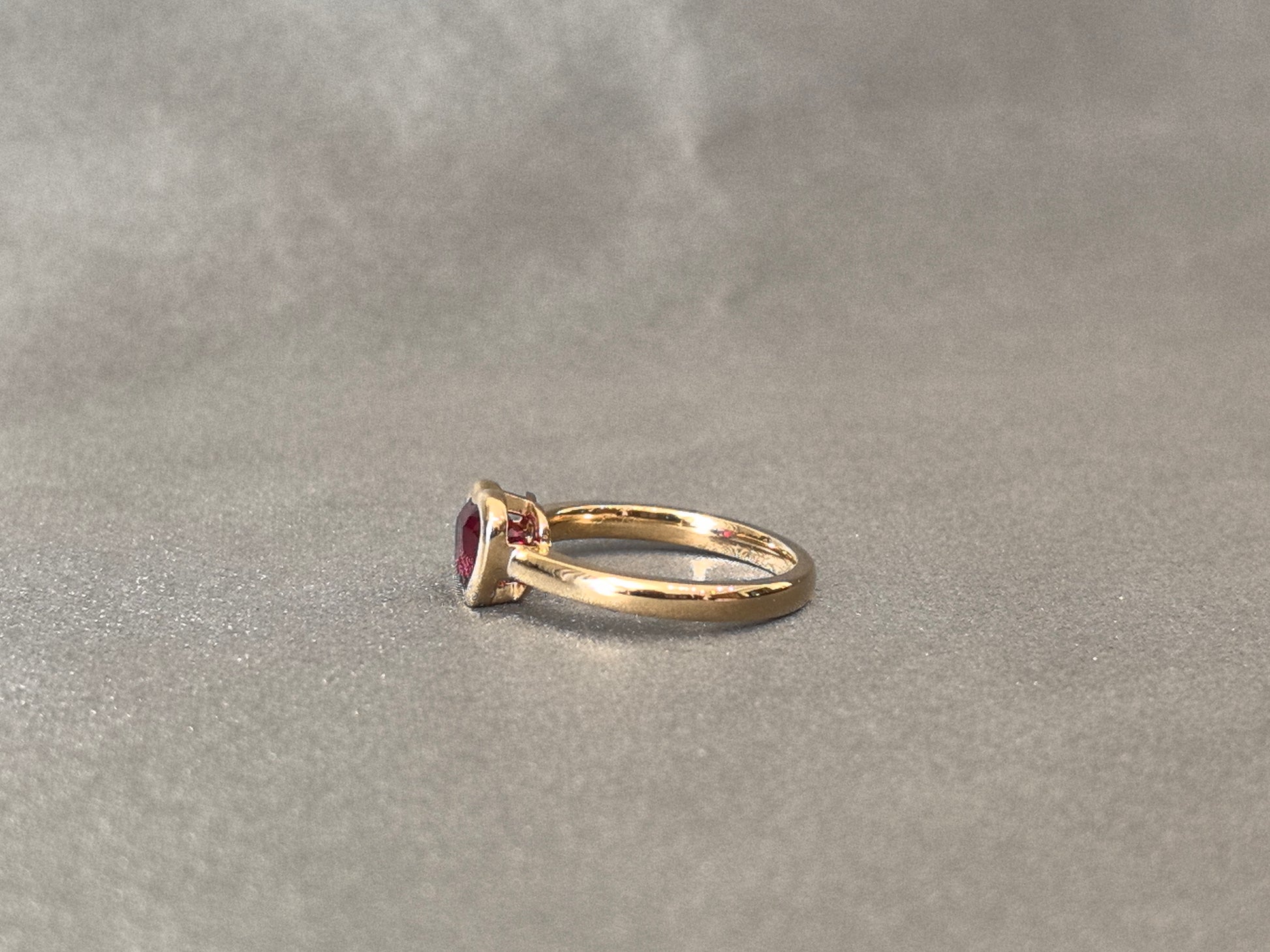 Fall in love with timeless romance and vintage charm through this exquisite heart-shaped lab ruby ring. Crafted with a lustrous bezel setting that gently cradles the vibrant red ruby, this piece draws inspiration from heirloom jewelry of the early 20th century. Delicate milgrain borders, intricate filigree, and a softly curved band complete the nostalgic aesthetic—making it a perfect symbol of enduring love and cherished memories.